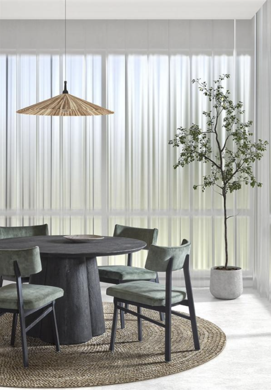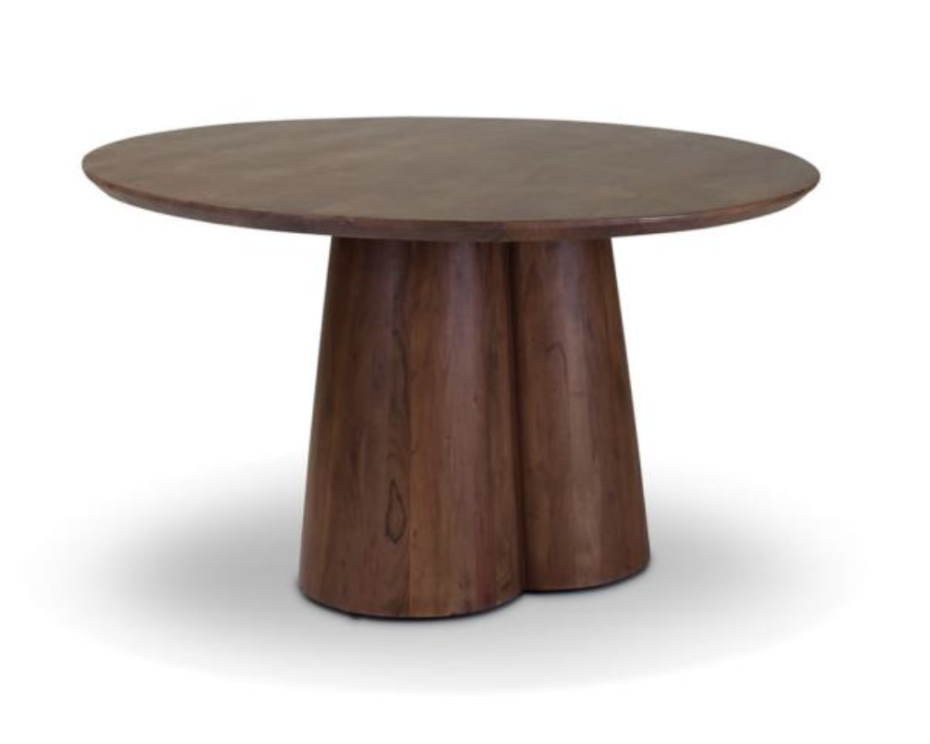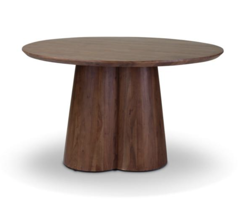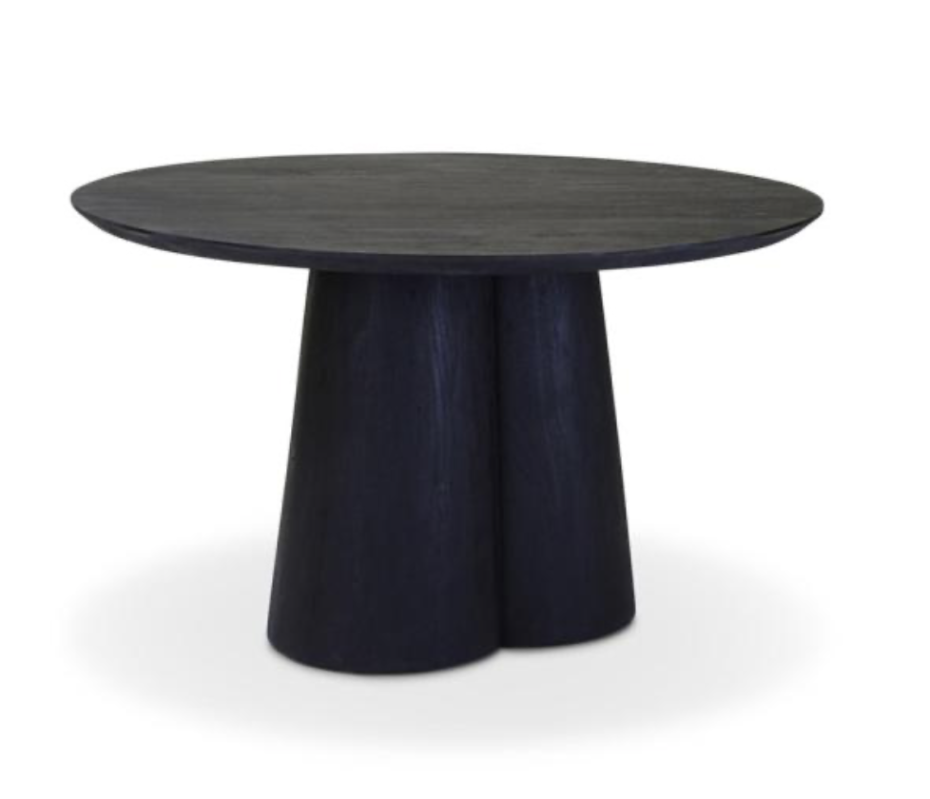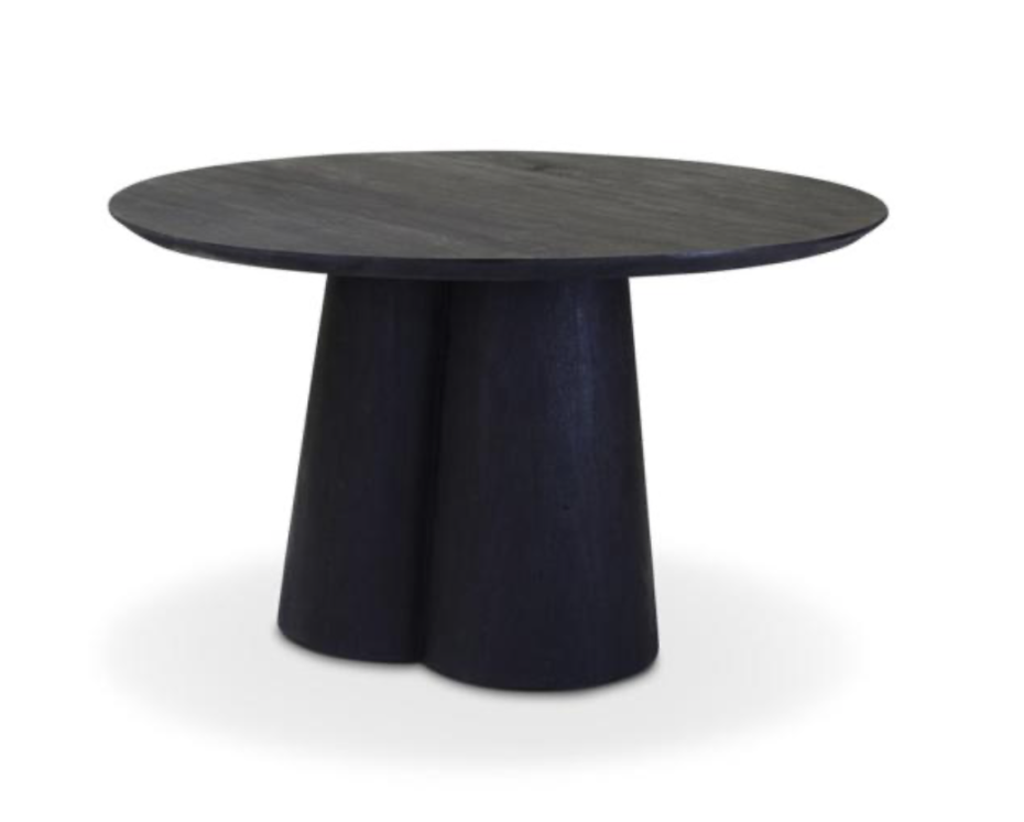 La table ronde Cobos est en bois d'acacia et peut être commandée en 2 coloris : marron ou noir