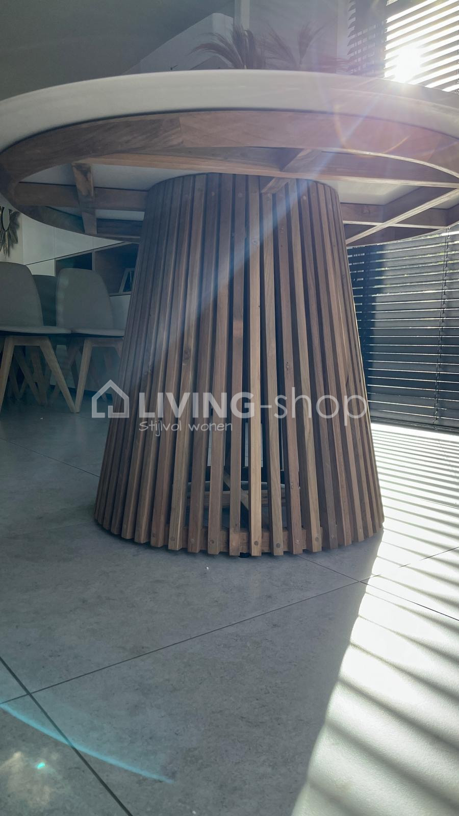 Matériau de pied : bois de teck - base: Ø70cm H76cm