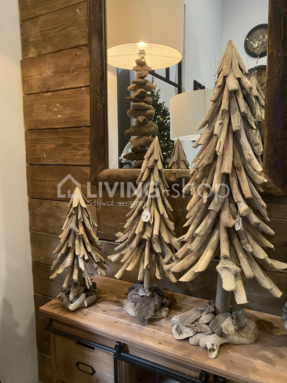 Ces sapins de Noël en bois flotté de J-Line sont disponibles en 4 tailles : petit, moyen, grand et extra large