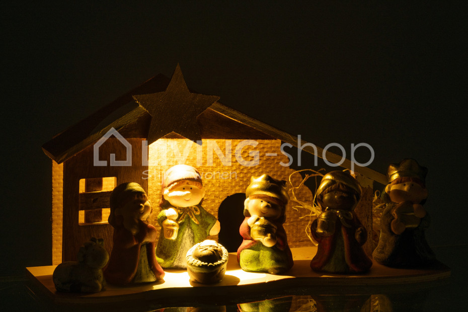 Crèche lumineuse LED avec figurines de Noël en porcelaine de J-Line