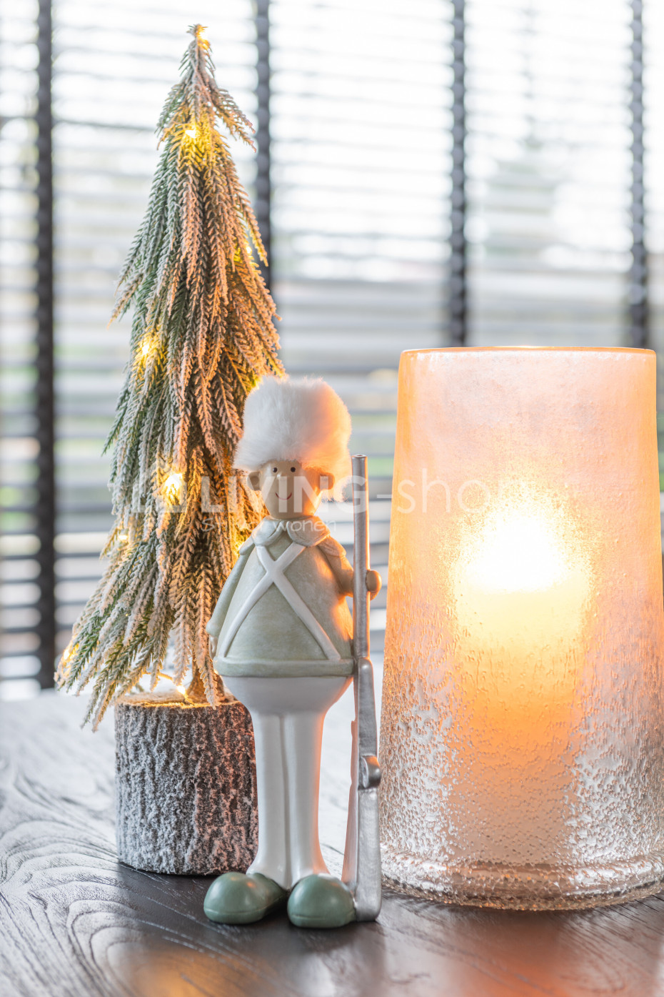 Moyen sapin de Noël en plastique avec lumières LED et neige artificielle : 12 x 12 x H 45 cm