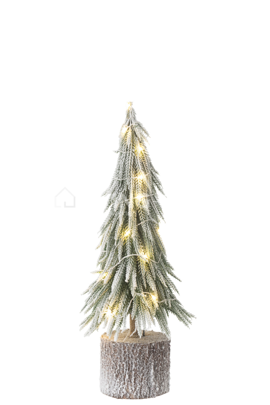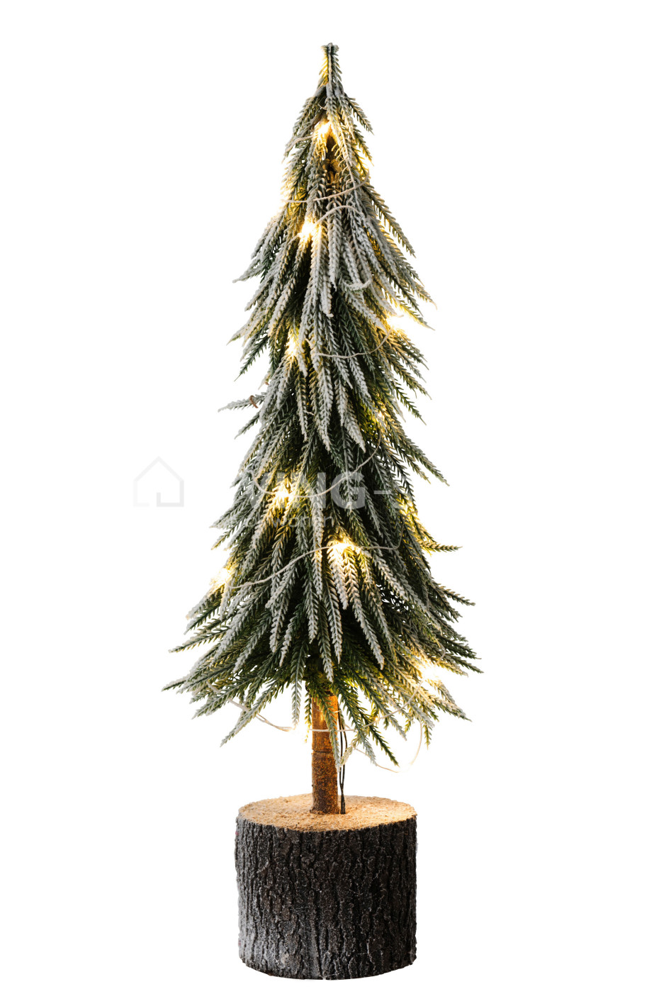 Grand sapin de Noël en plastique avec lumières LED et neige artificielle : 13 x 13 x H 60 cm