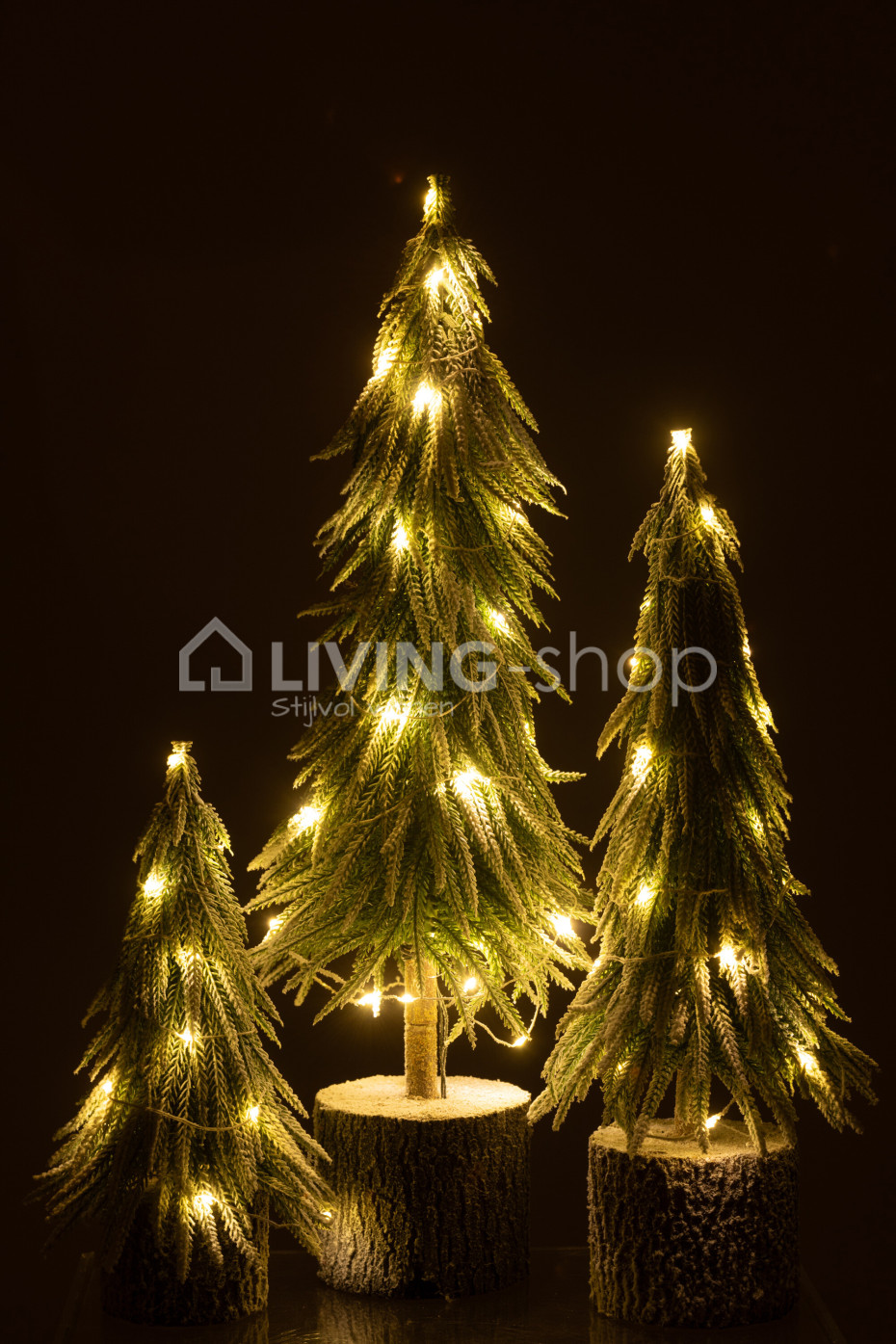 Les sapins de Noël en plastique J-Line avec lumières LED et neige artificielle sont disponibles en trois tailles :