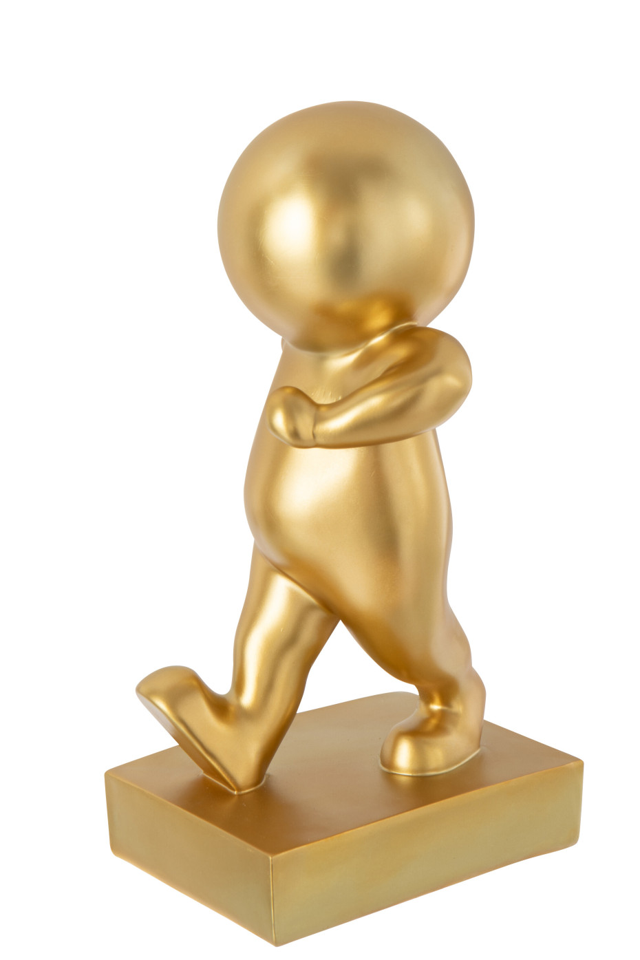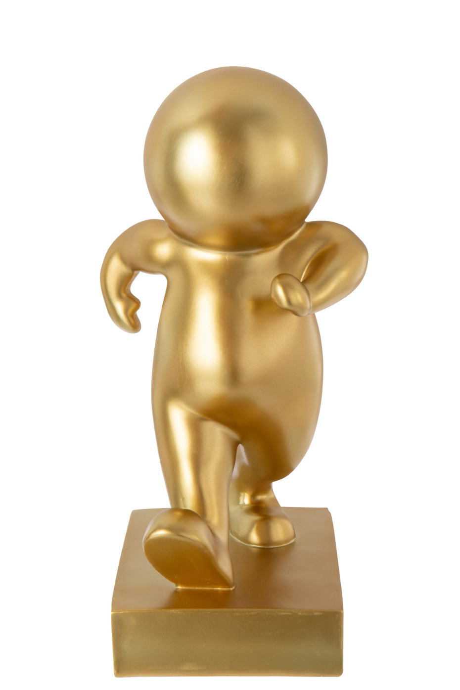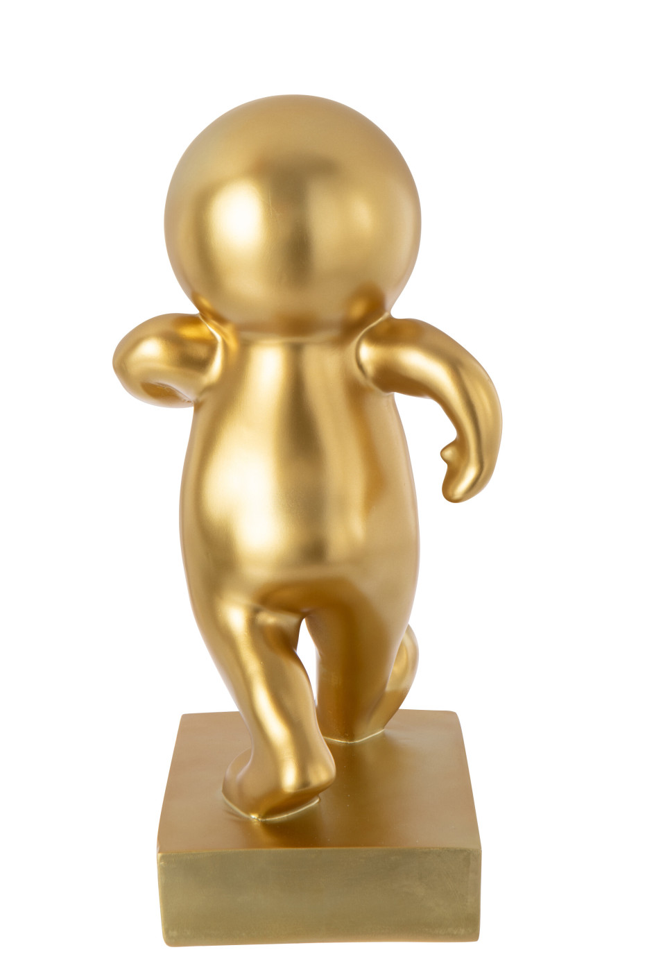 Het mannetje beeld Marcel is gemaakt van polyresine goudkleurig
