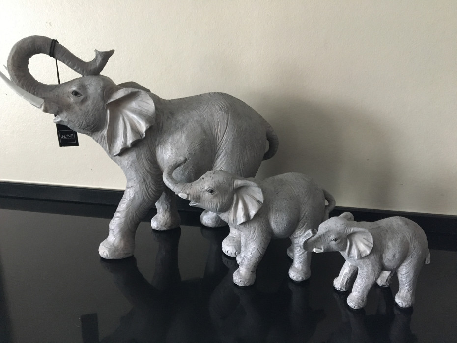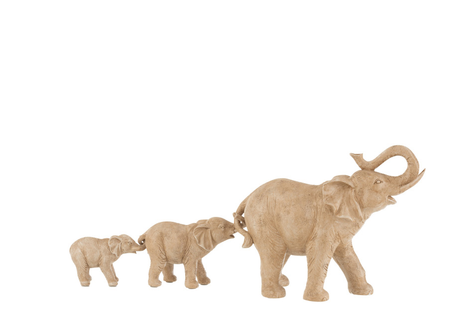 Beeld 3 olifanten J-LINE van polyresin grijs of beige of donkerbruin