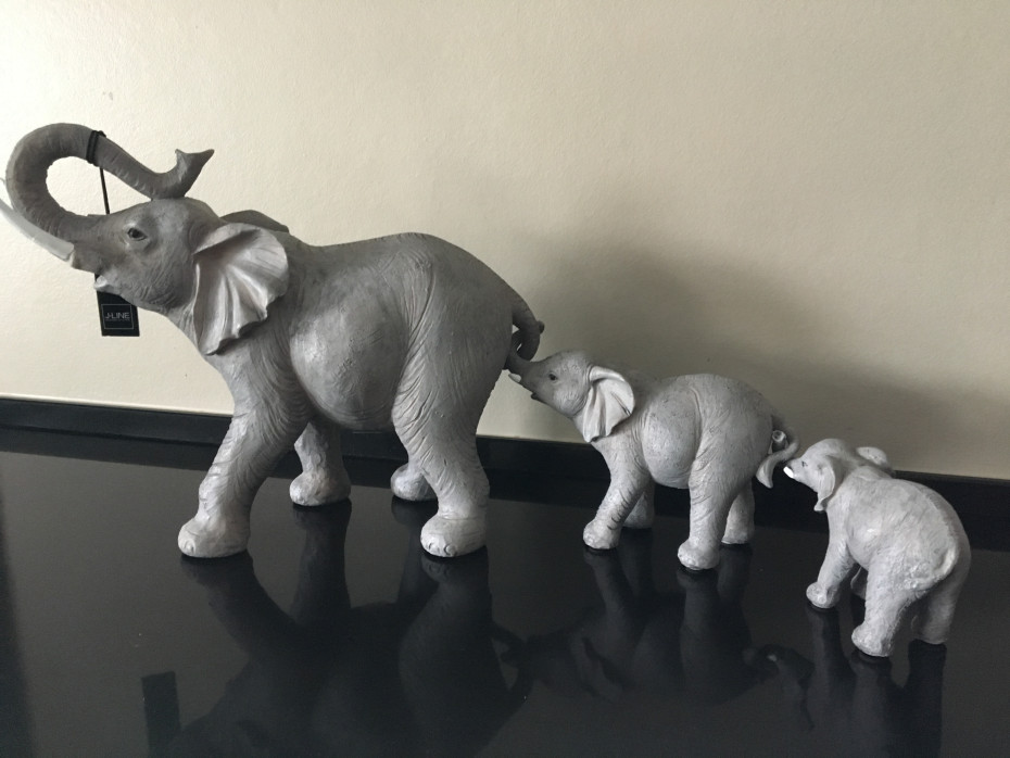 J-Line Olifant 3 op een rij met 2 olifant kinderen polyresin