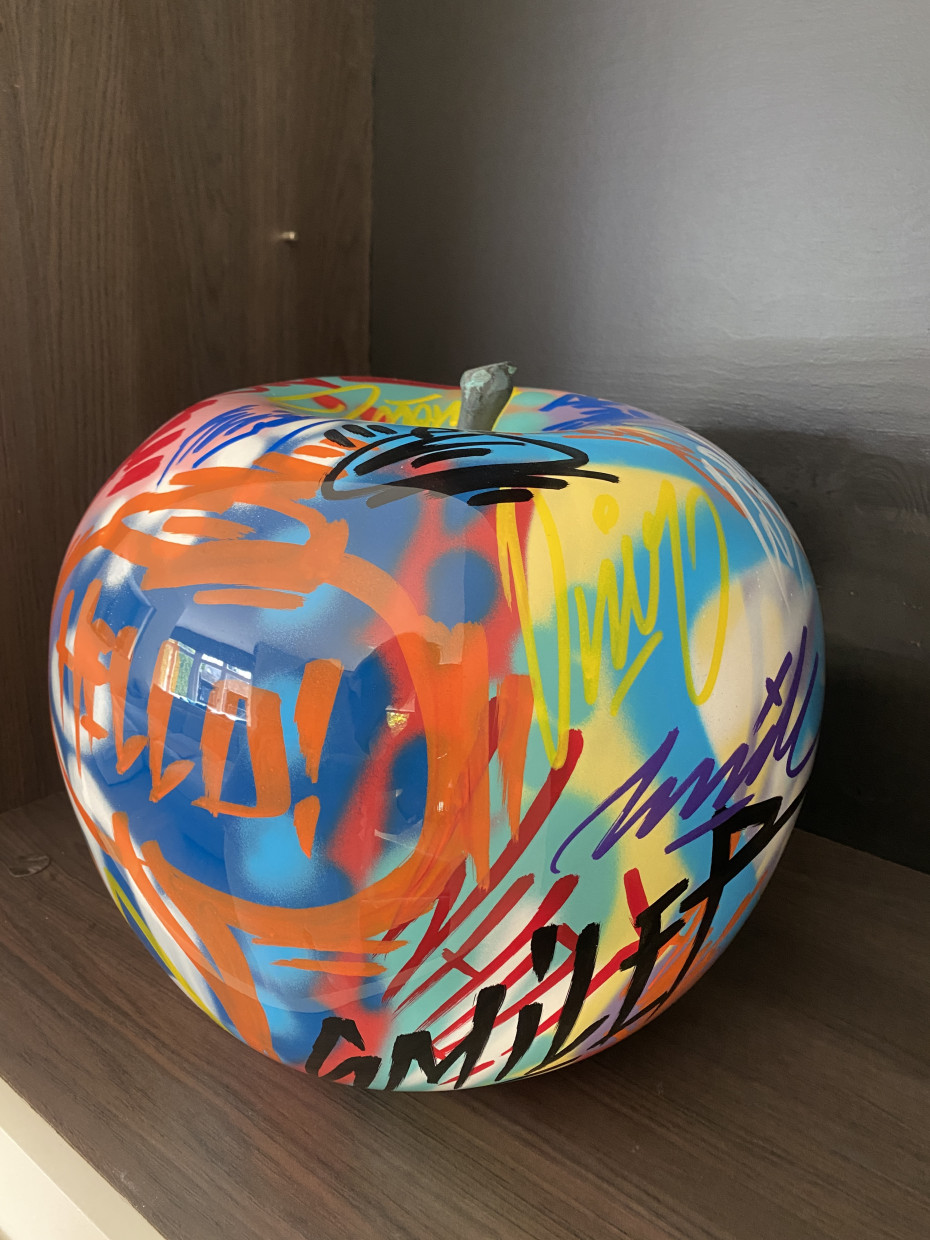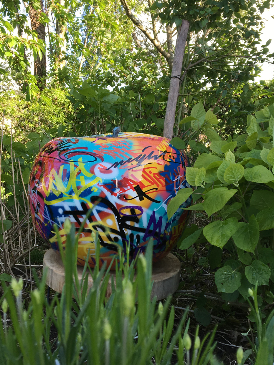 -Graffiti appel outdoor sculpture plus ∅ 75cm H62cm 40kg