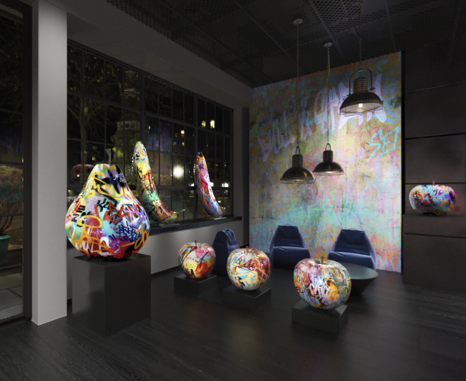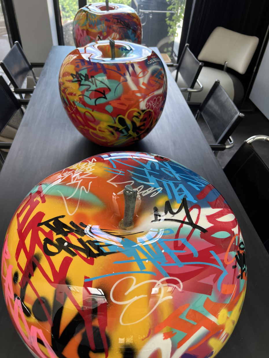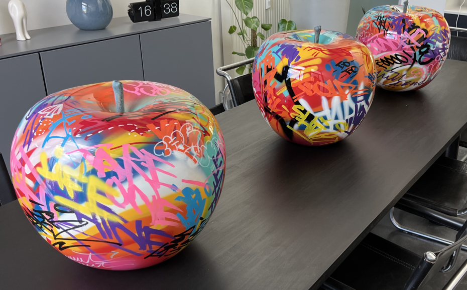 De outdoor graffiti appels en peren zijn nog in kleinere afmeting te kopen; nl in diameter ∅12 prijs op aanvraag