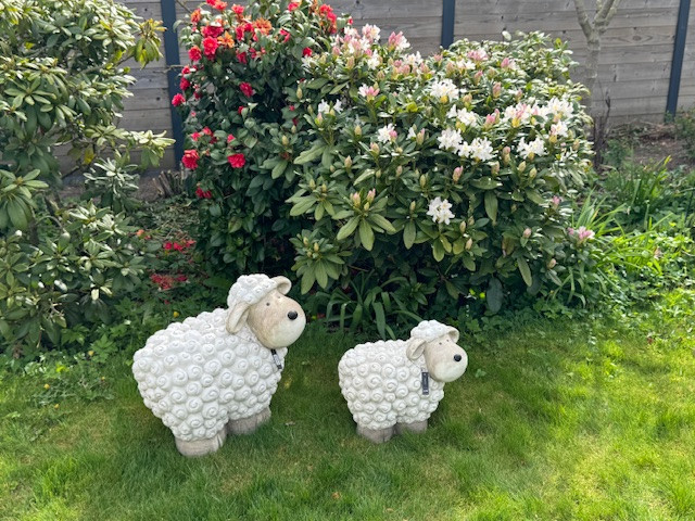 Kies deze leuke schapen beelden die geschikt zijn voor buiten, ze zijn er in 2 maten;