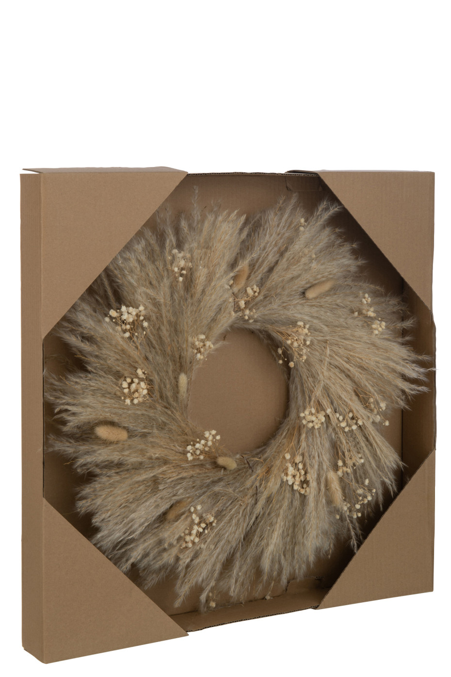 Ronde gevlochten krans met gedroogde boemen voor een romantische zomerse sfeer in je interieur of aan je voordeur