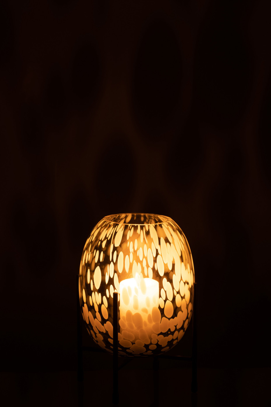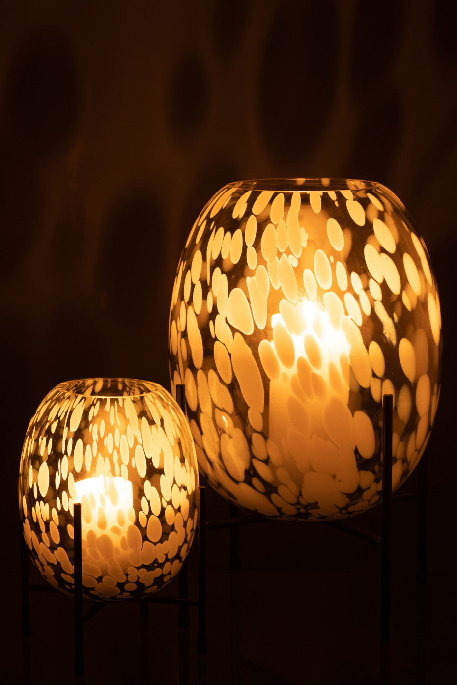 J LINE vaas spikkelglas wit op voet met zwarte metalen staander