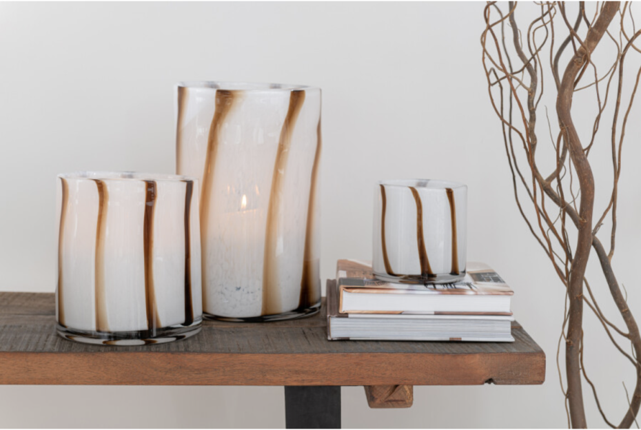 Glazen theelichthouder met strepen, de J-Line Safari reeks