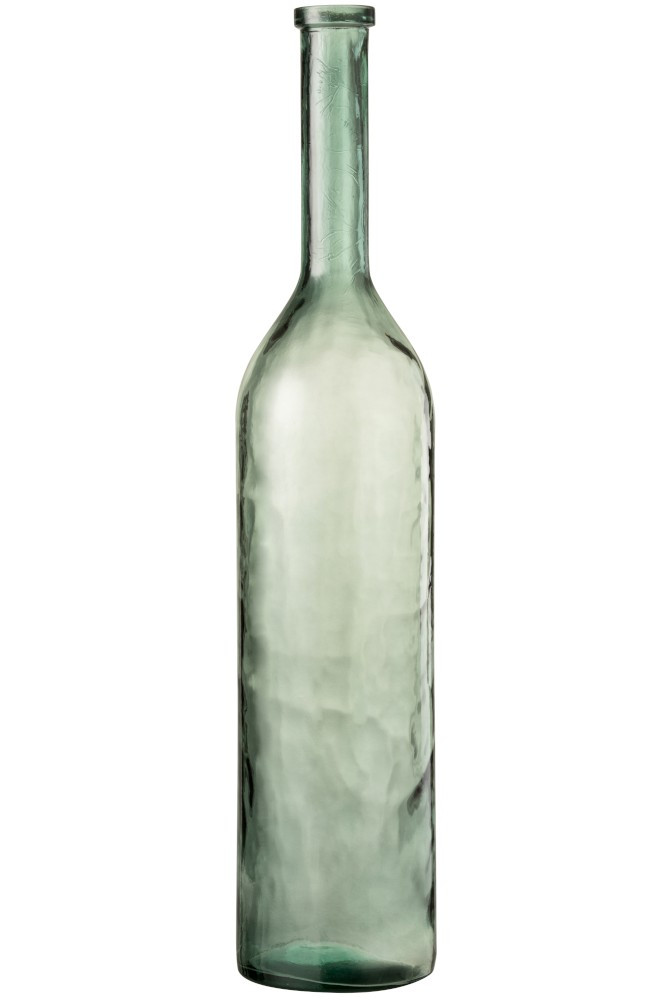 Verschillende vormen wijnfles vazen en verschillende maten glazen vazen in diverse groene tinten transparant en niet doorzichtig