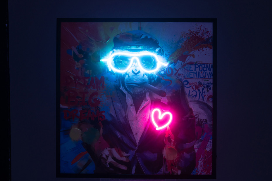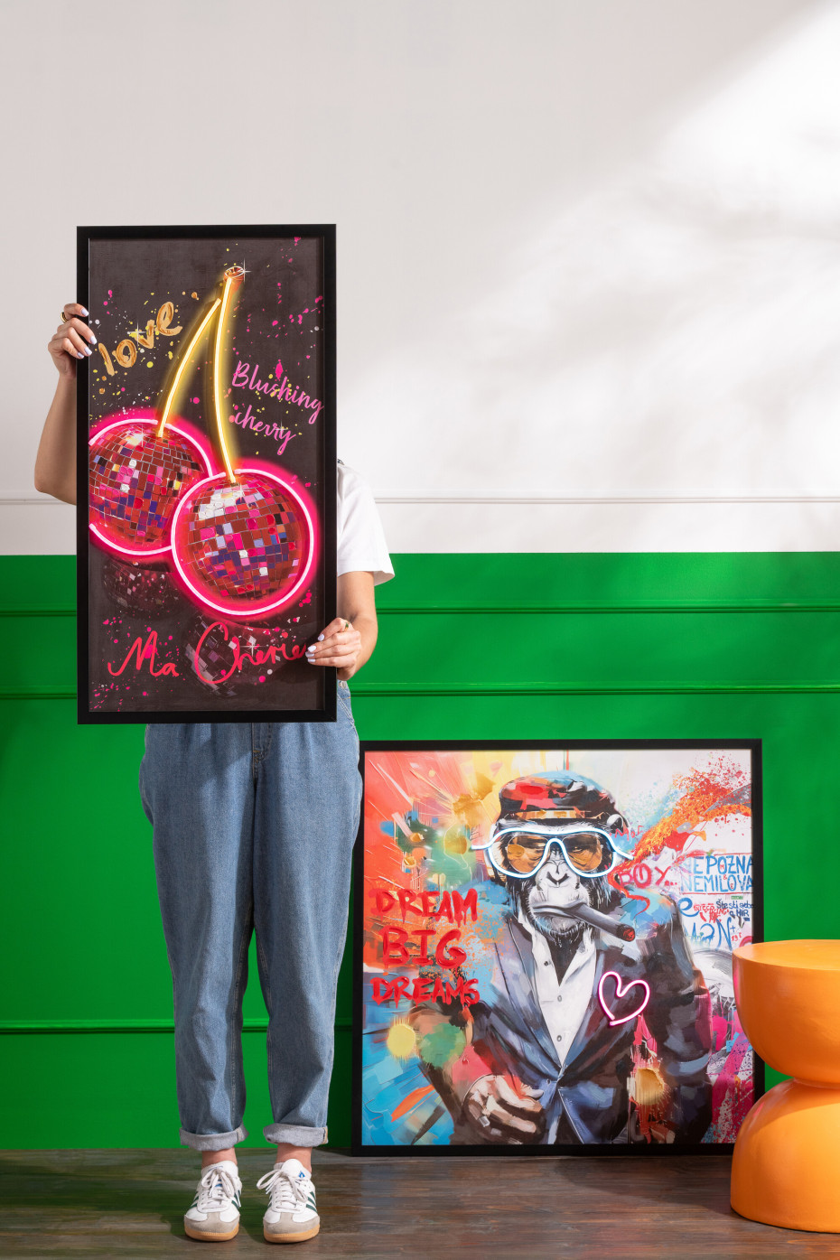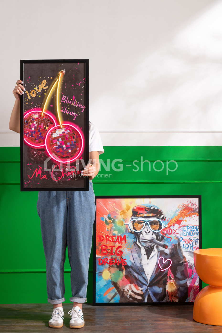 Schilderij LED Monkey / Cherry LED wanddecoratie J-LINE