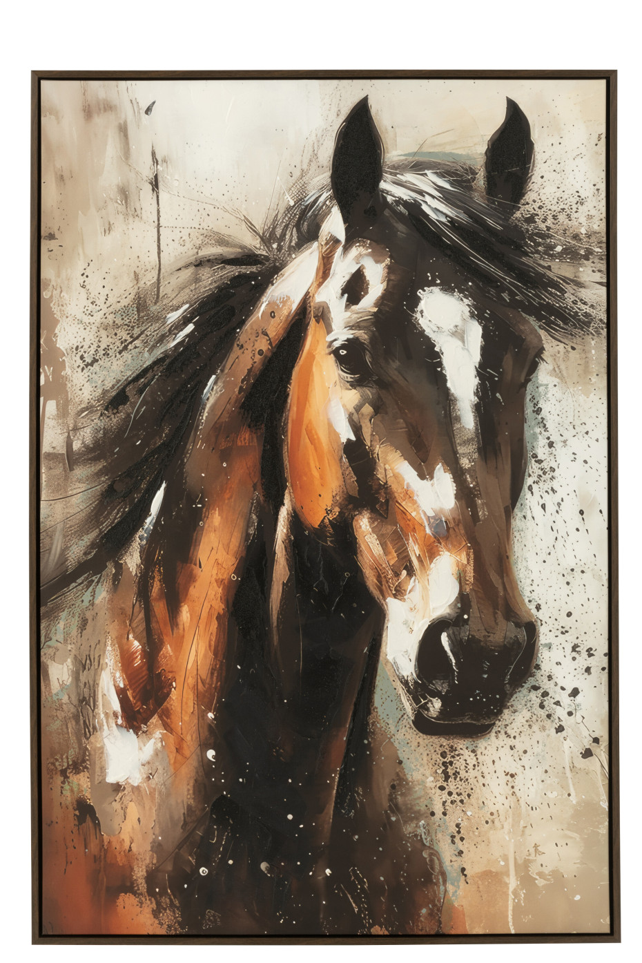 Schilderij paardenkop bruin wit zwart