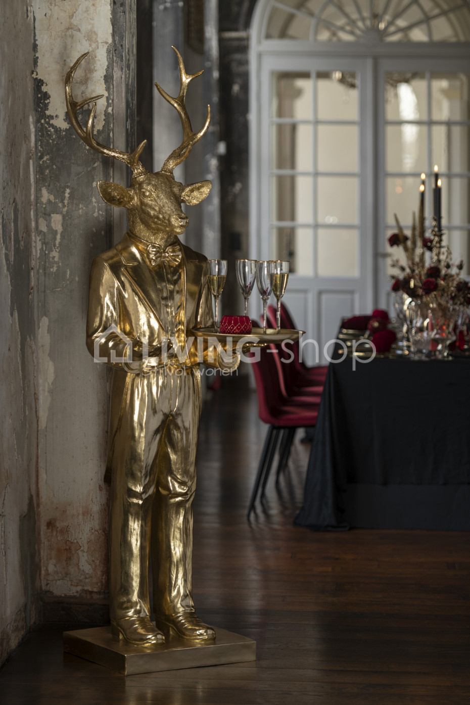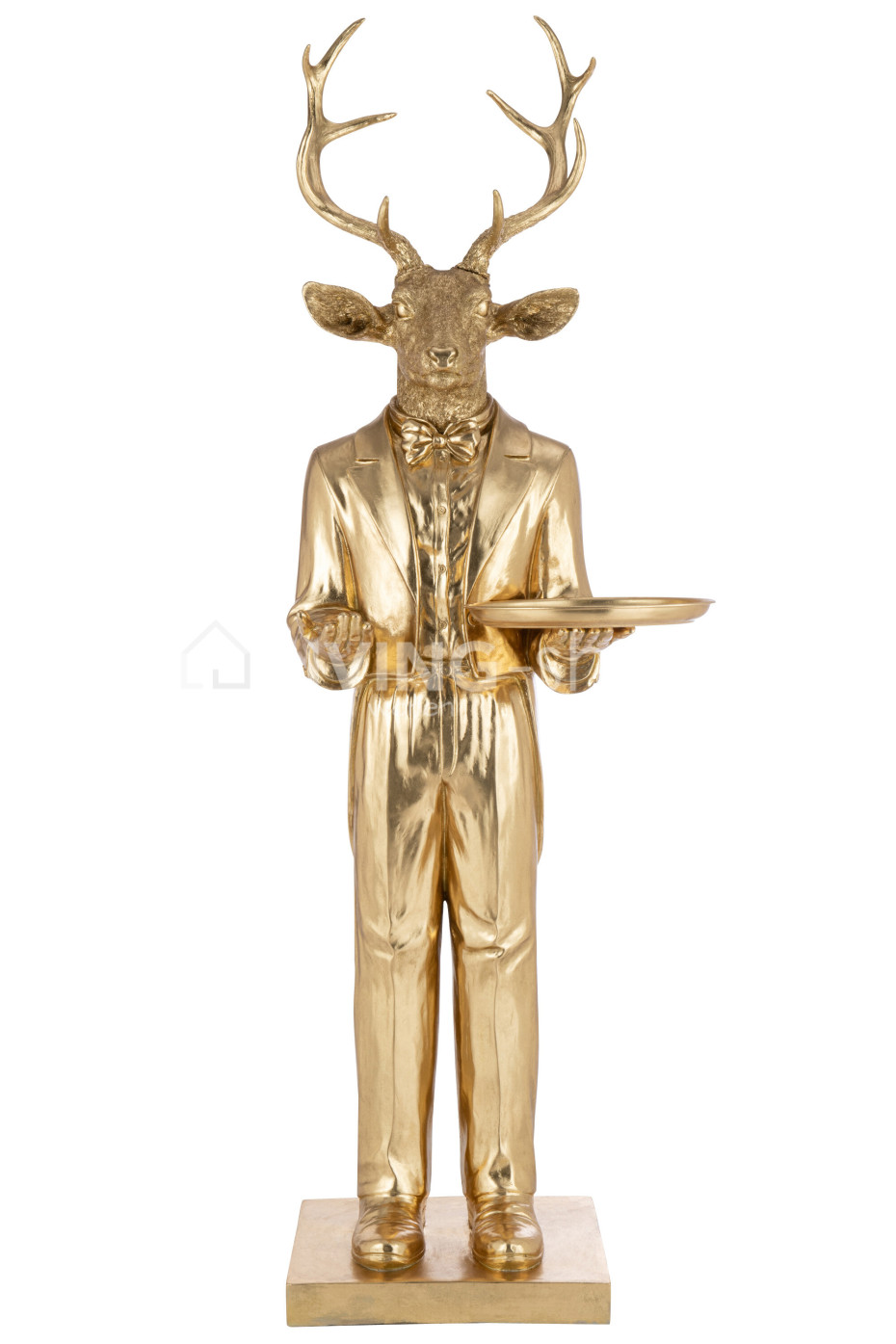 Hert Ober beeld met serveer Plateau Poly Goud van J-Line Pleasure of Living