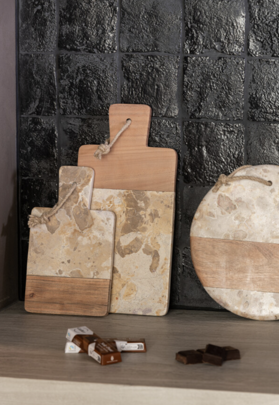 Materiaal marmer presenteerschaal en houten voet