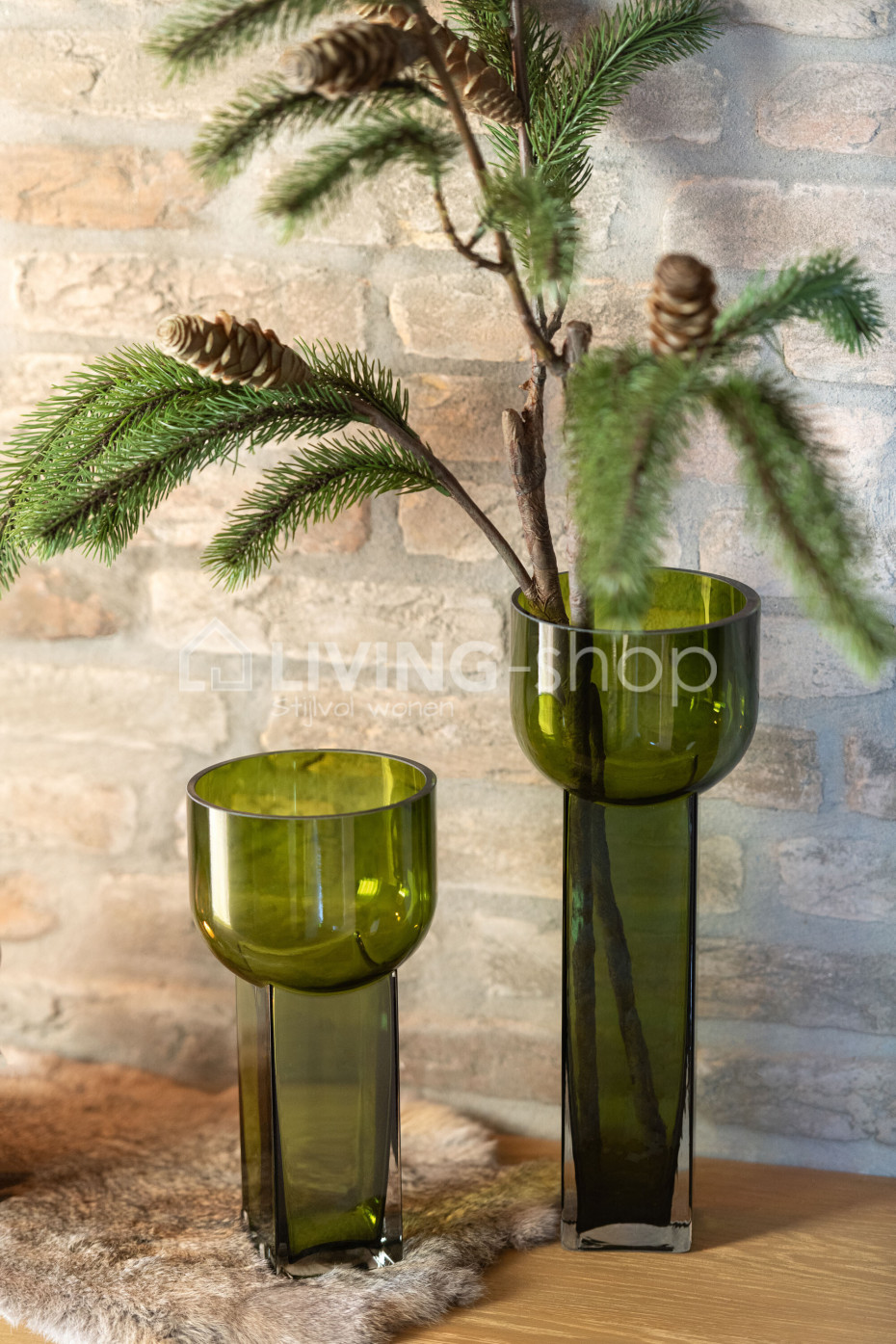 Groene glazen vazen van het Belgische interieur en decoratiemerk J-line pleasure of Living