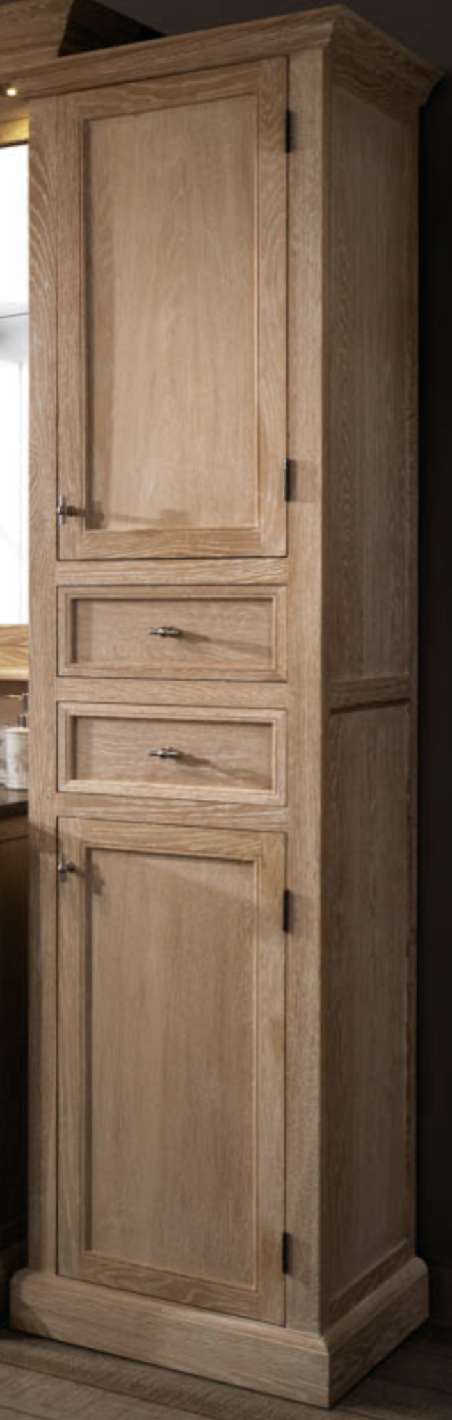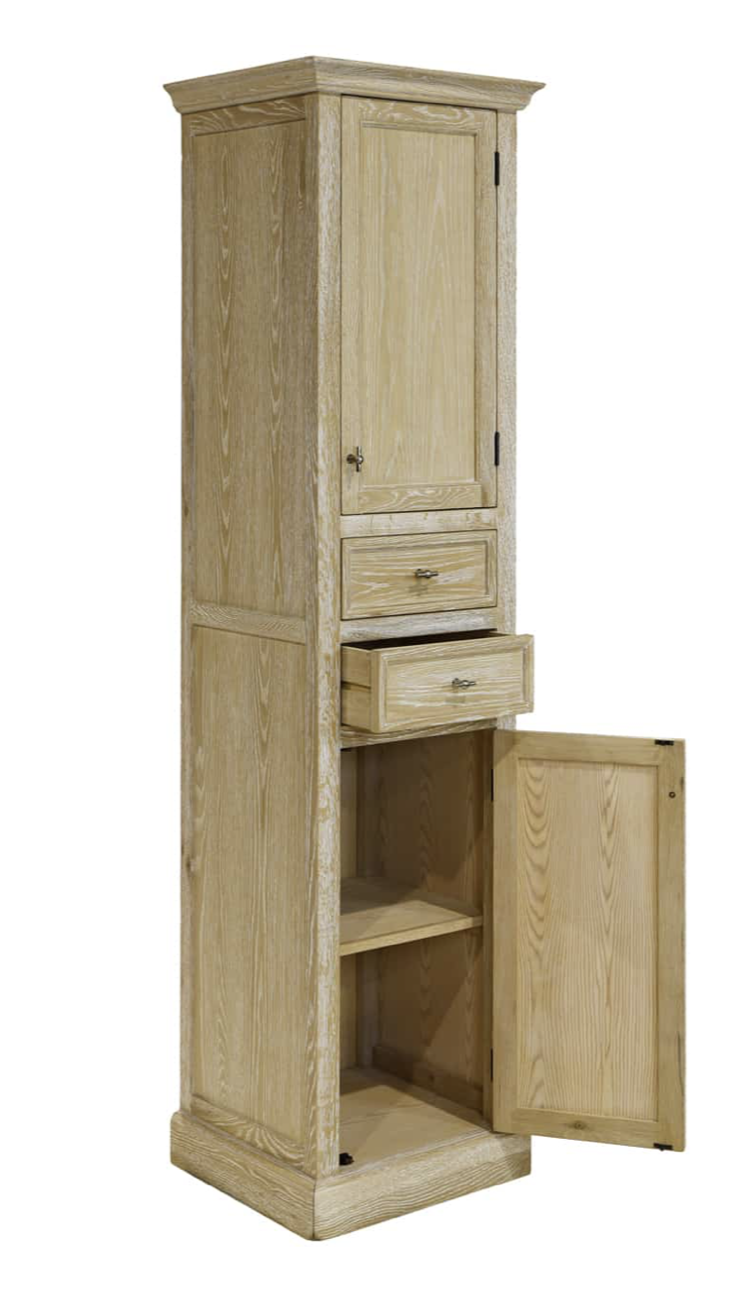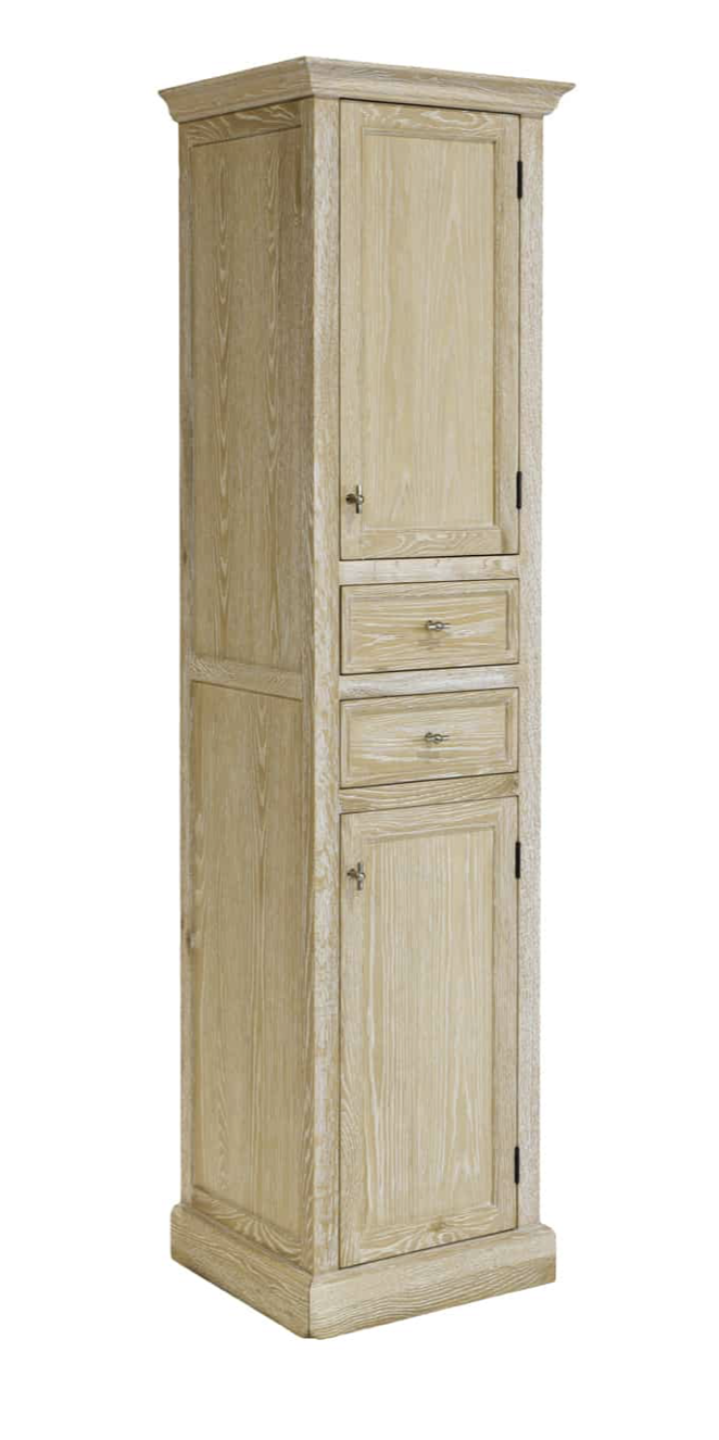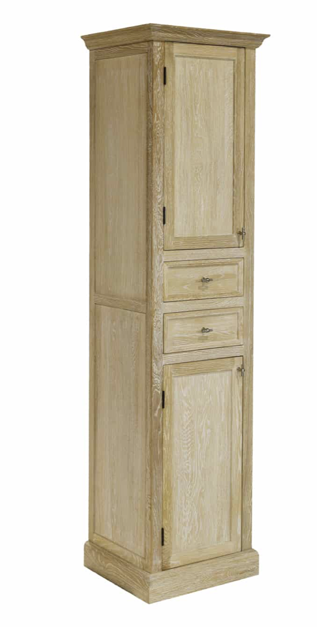 Landelijke stijl badkamer kolomkast van massieve eik vervaardigd en met white wash patine afgewerkt