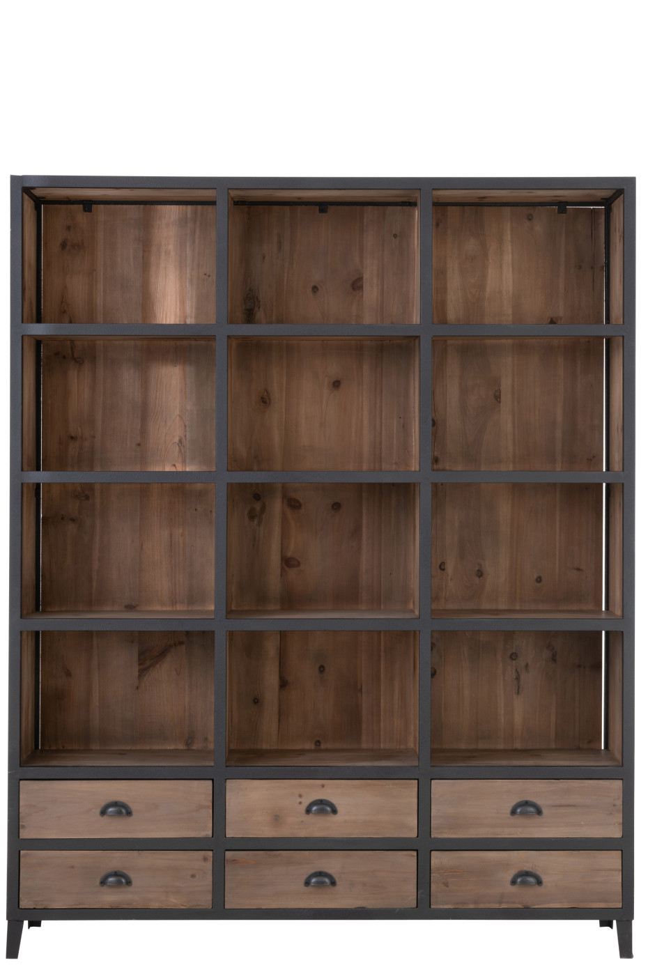 Houten bibliotheekkast of boekenkast met 12 vakken en 6 schuifladen van J-LINE.