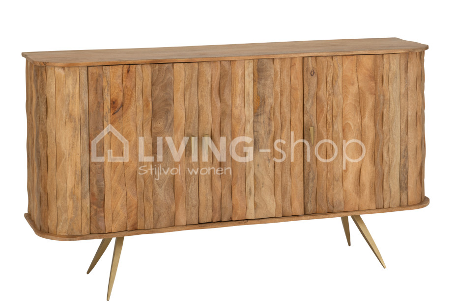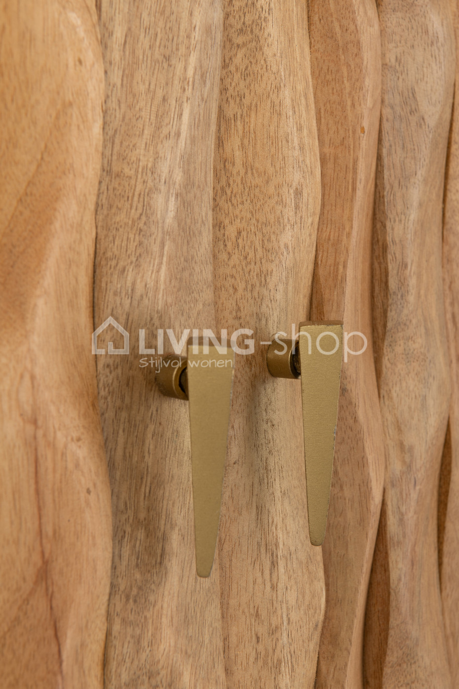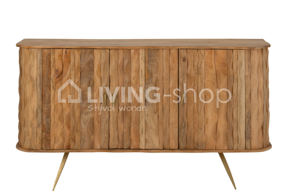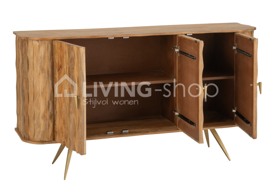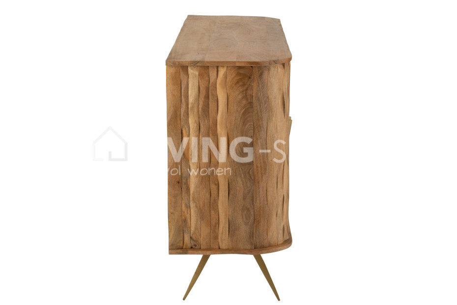 Prachtig 3 deurs dressoir in naturel curved mangohout gecombineerd met goud metalen handgrepen