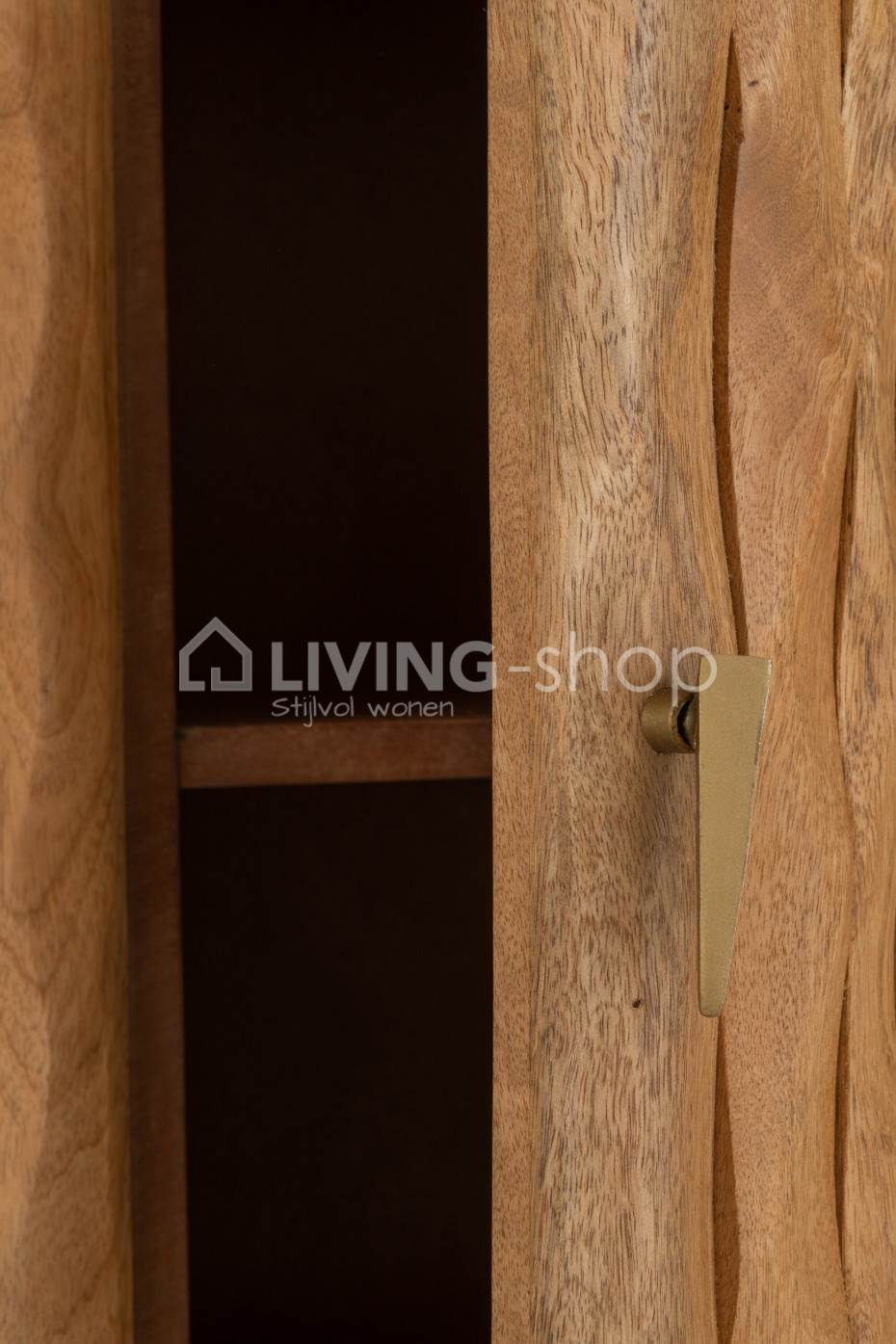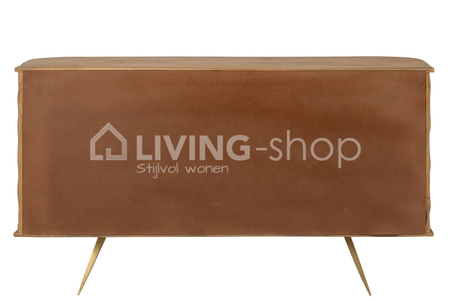 Retro vintage kast dressoir mango hout van J-Line. Het dressoir rust op een goud metalen poten