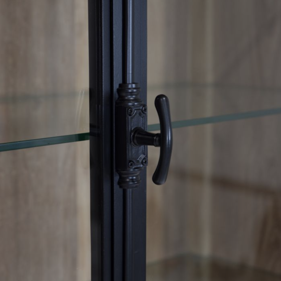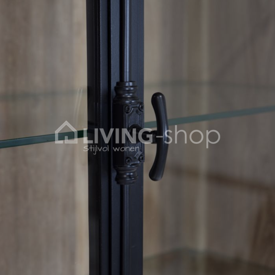 Cottage vitrinekast 2 deuren met zwart staafslot