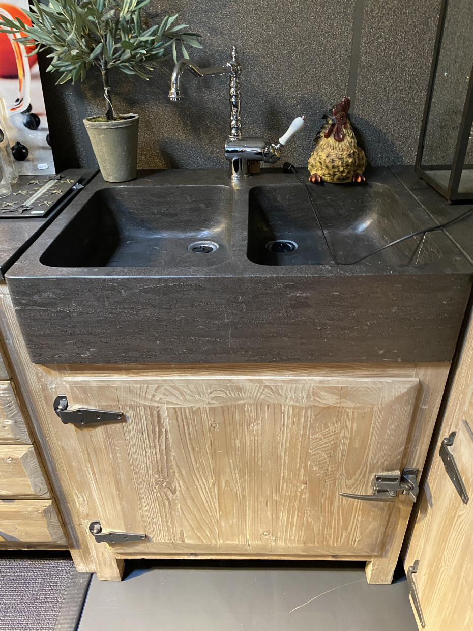 Materiaal: grenenhout en blauwsteen gootsteen