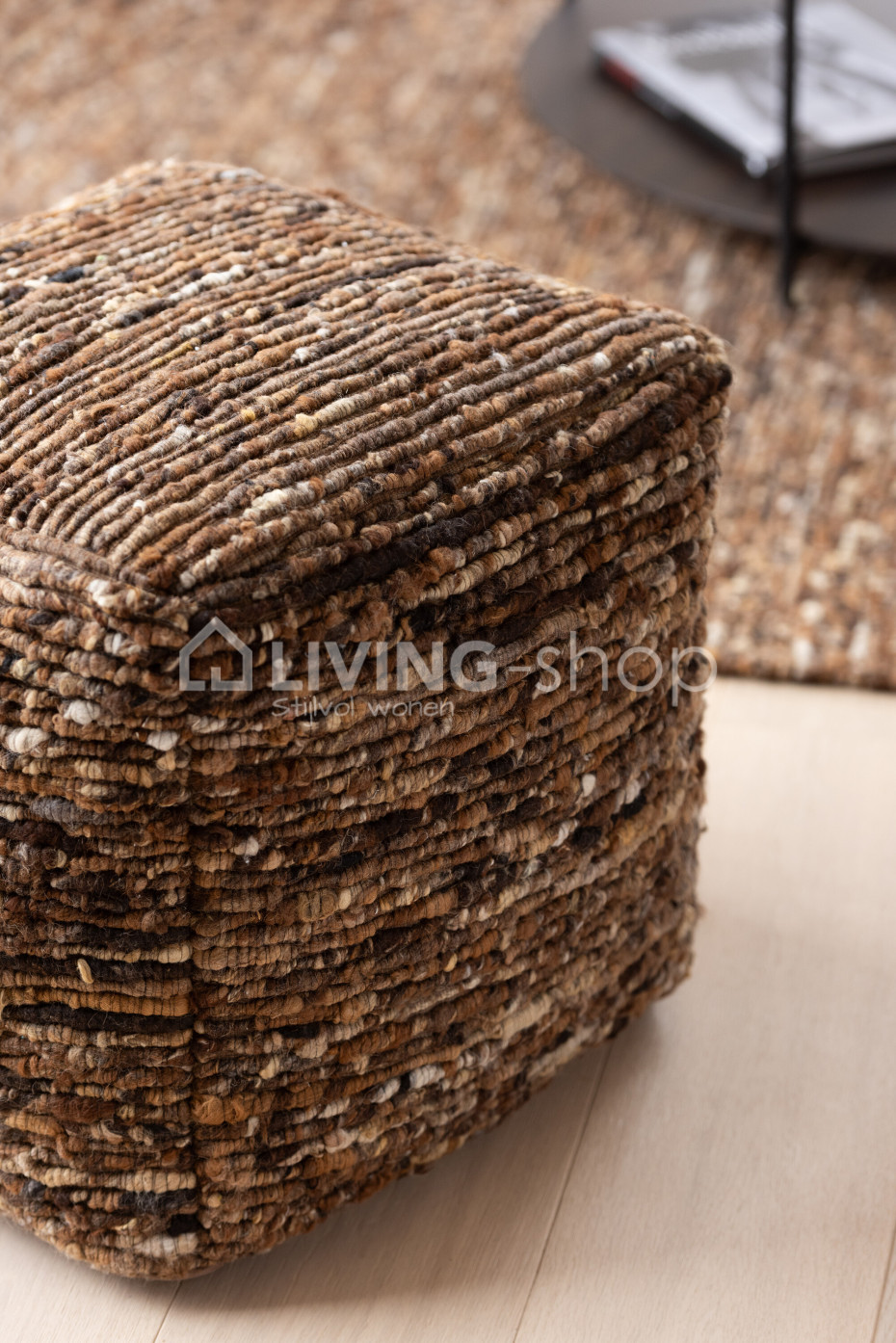 Vierkante poef wol ecru/bruin van het interieur en decoratiemerk J-Line
