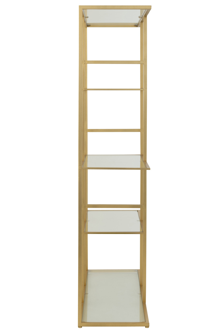 Het wandrek is gemaakt van goud metaal smeedwerk met glazen leggers en afgewerkt met fijne profielen.