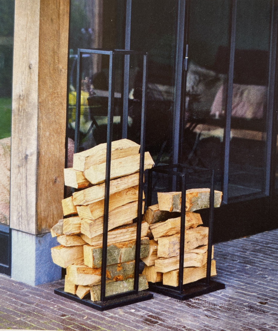 Deze vierkante rekken voor hout opslag zijn gemaakt van zwart ijzer en beschikbaar in 2 formaten: