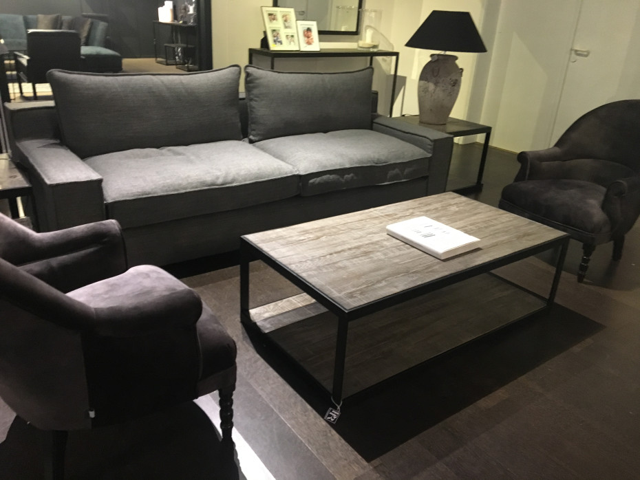 Industrieel landelijke stijl koffietafel gemaakt van heriatge eik en zwart metaal van Rogiers, PR Living