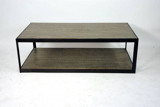 Deze industrieel landelijke stijl salontafel heeft nog een handige legplank in heritage eikenhout onderaan.