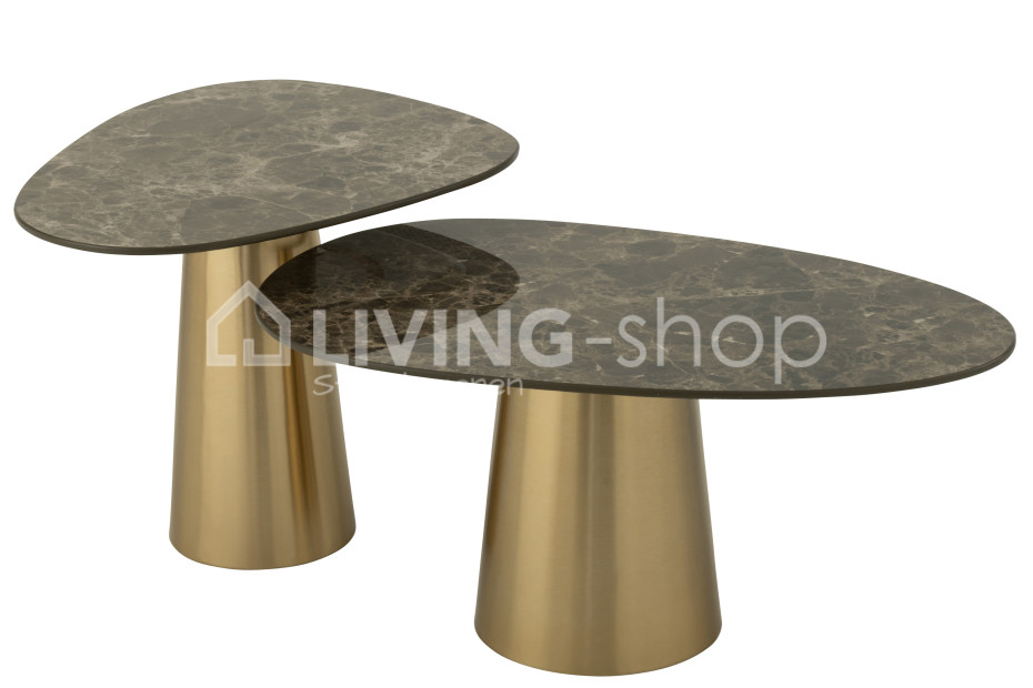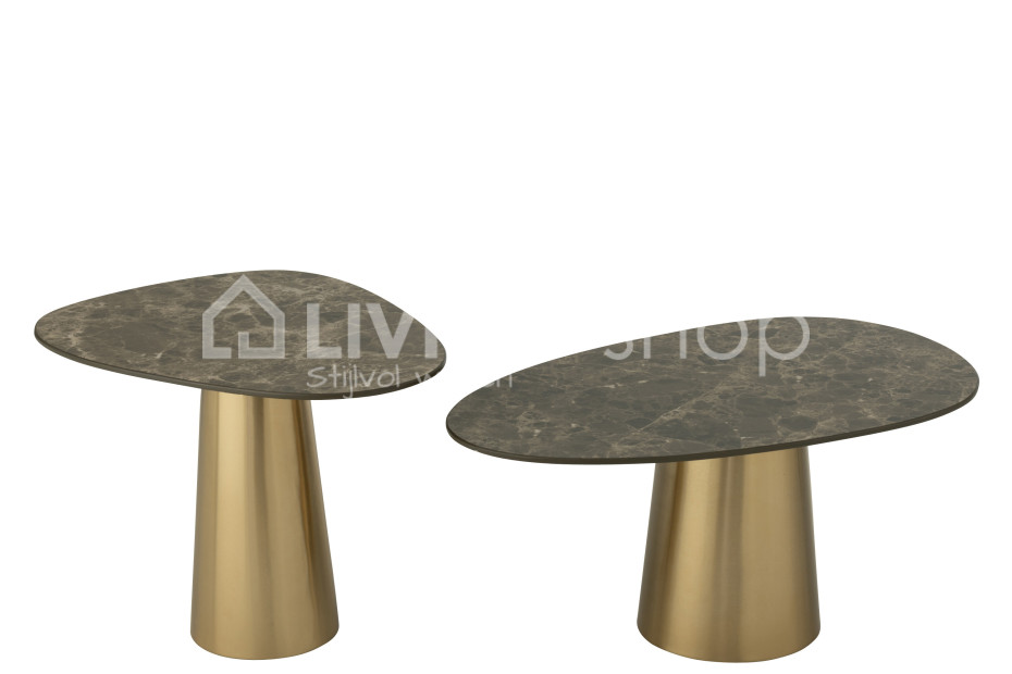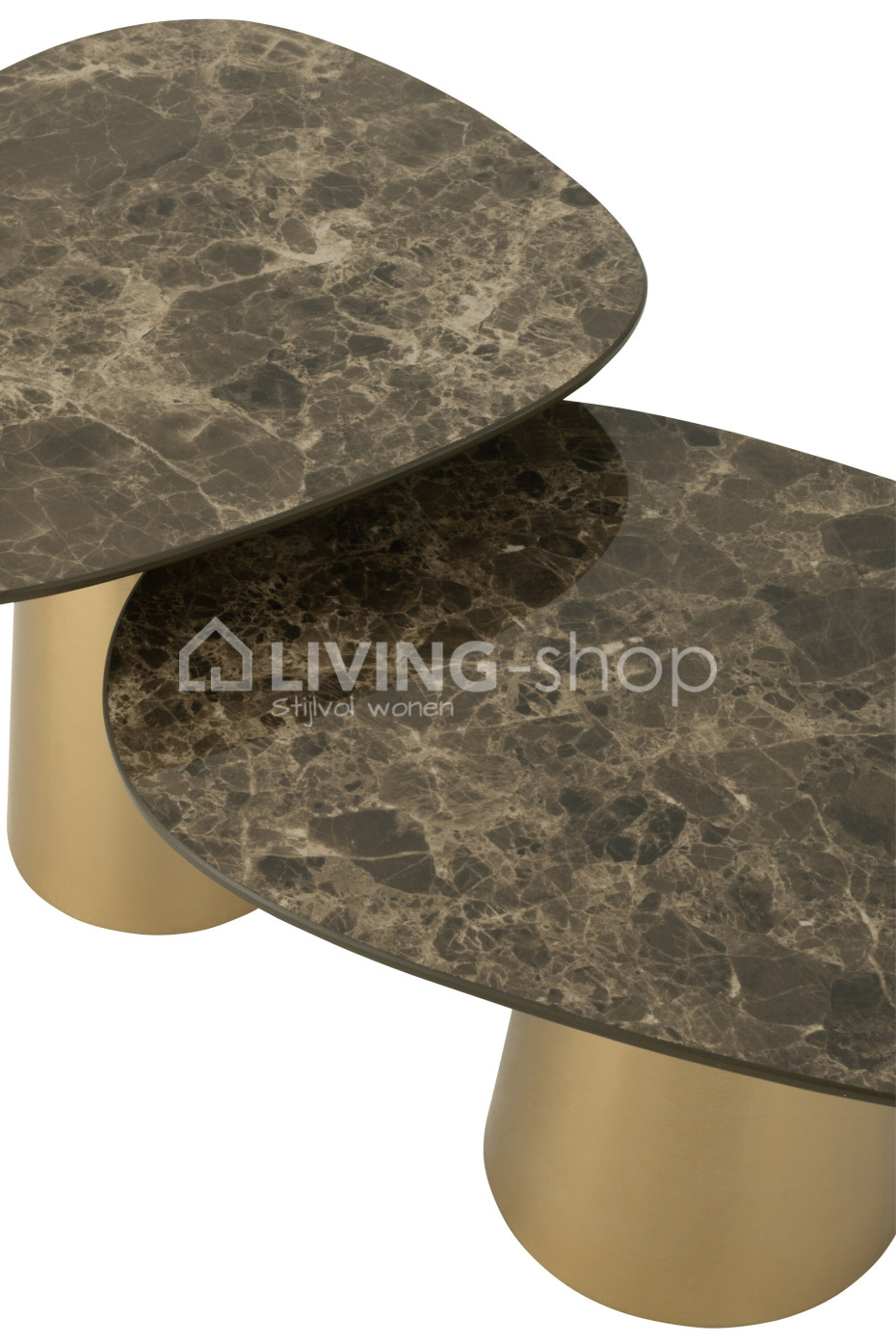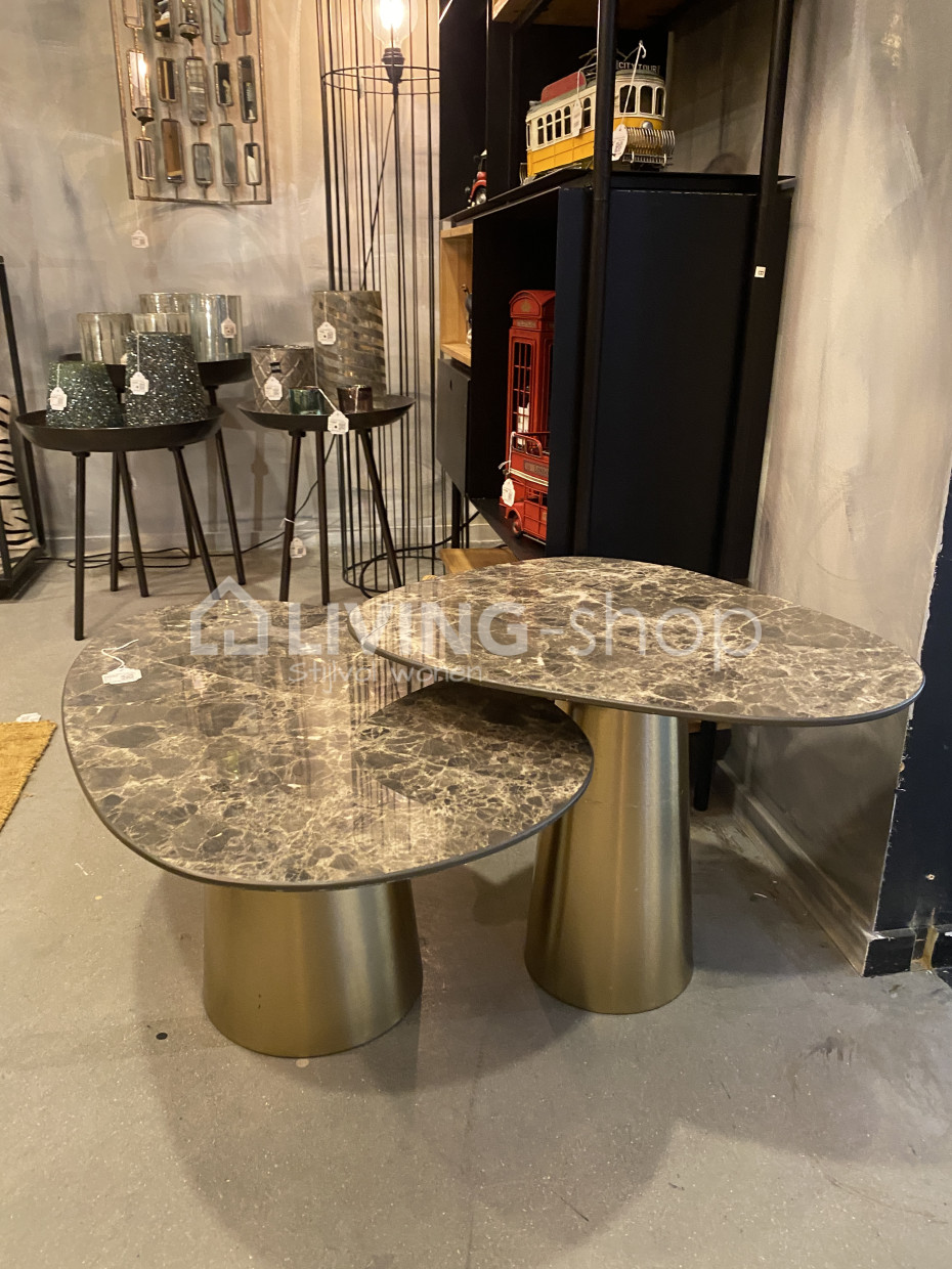 Nesting salontafels design of bijzettafels marmer effect ijzer brons van het Belgische merk J-line pleasure of living