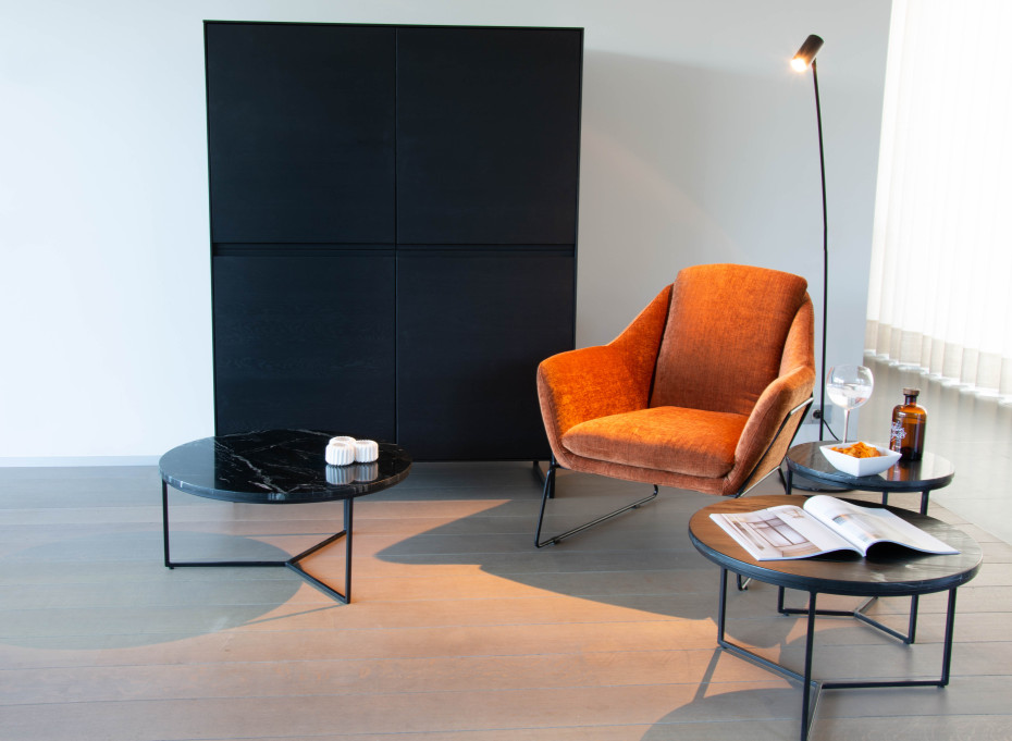 Moderne zwart marmeren salontafels van het Belgische merk Castle Line