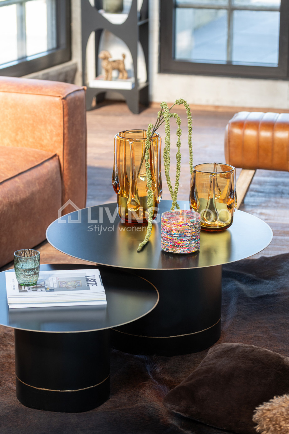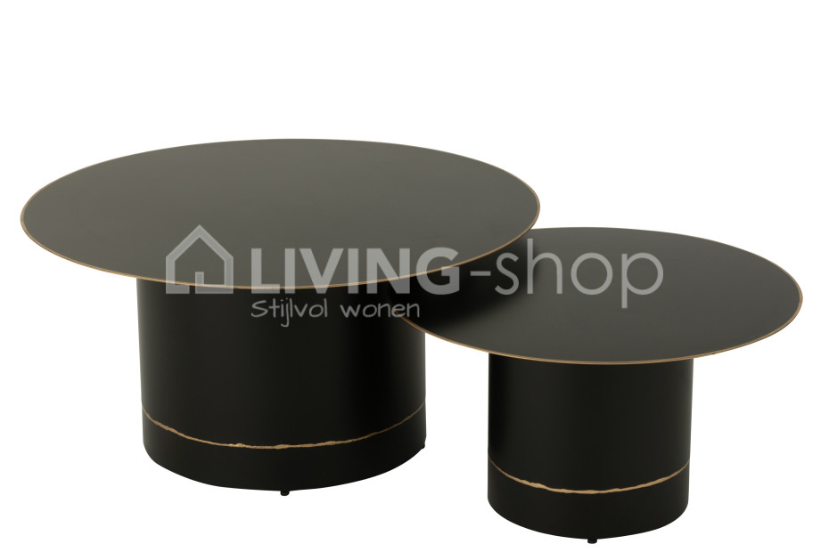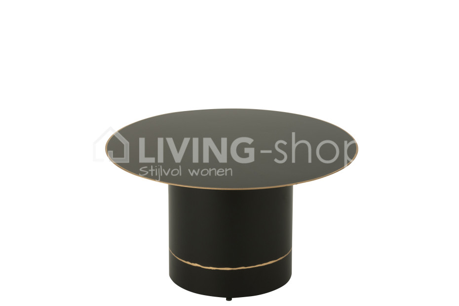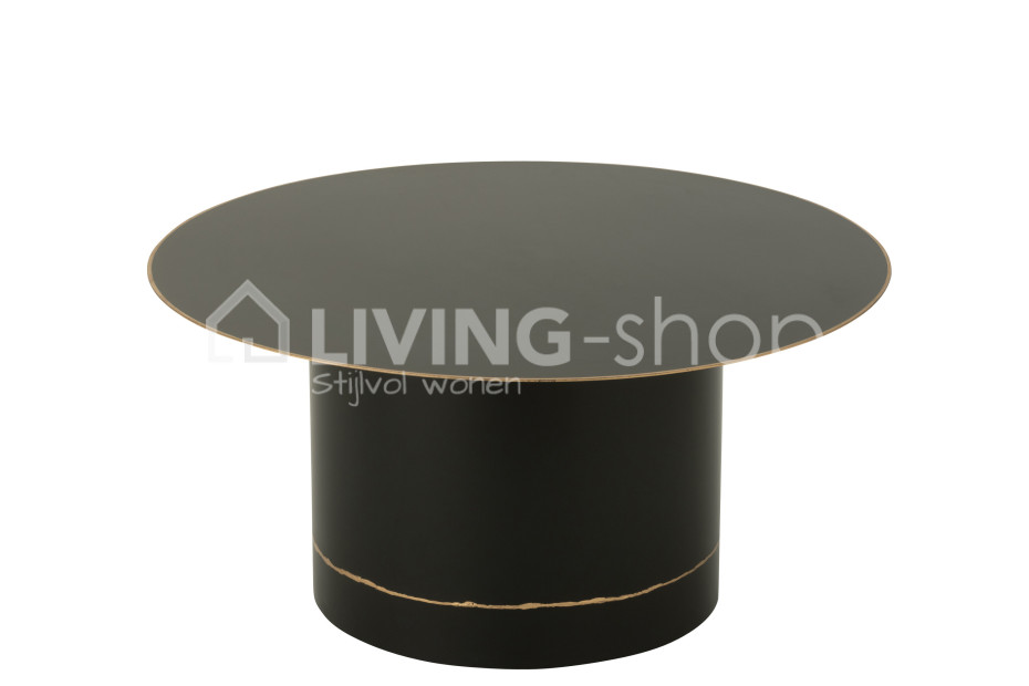 Zwarte salontafel met cilindervoet zwart met gouden boord J-Line