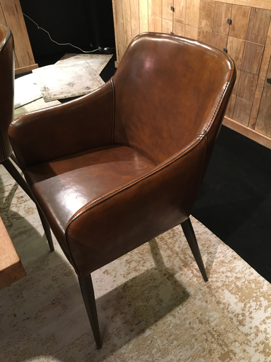 Armstoel vintage pu bruin eetkamerstoel Baltazar Timeless Living