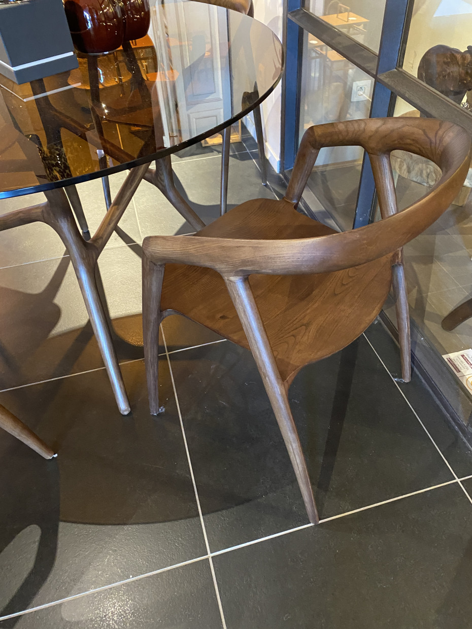 De Ethnic houten stoel Bok is gemaakt uit 1 geheel zonder naden wat deze essenhouten stoelen uniek maakt
