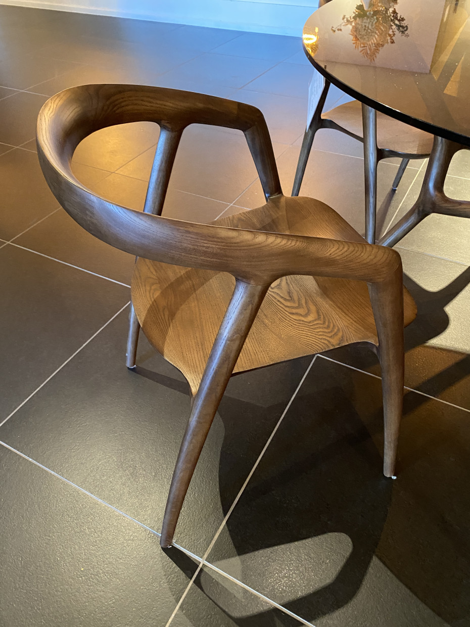 Deze prachtige Ethnic essenhouten stoel is een kunstwerk op zich door de mooie rondingen die ontstaan in het essenhout en waarbij de nerven van het hout zichtbaar blijven