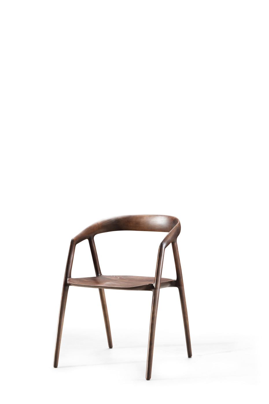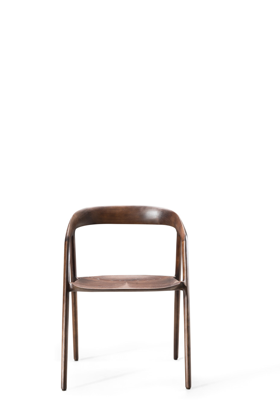 Bok houten stoel Ethnic heeft afgeronde armleuningen en ook een voorgevormde zitting.