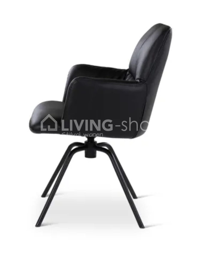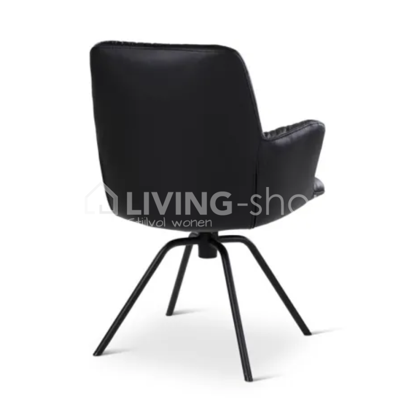 De Boston bureaustoelen of eetkamerstoelen draaien om hun as en hebben zwarte metalen stoelpoten