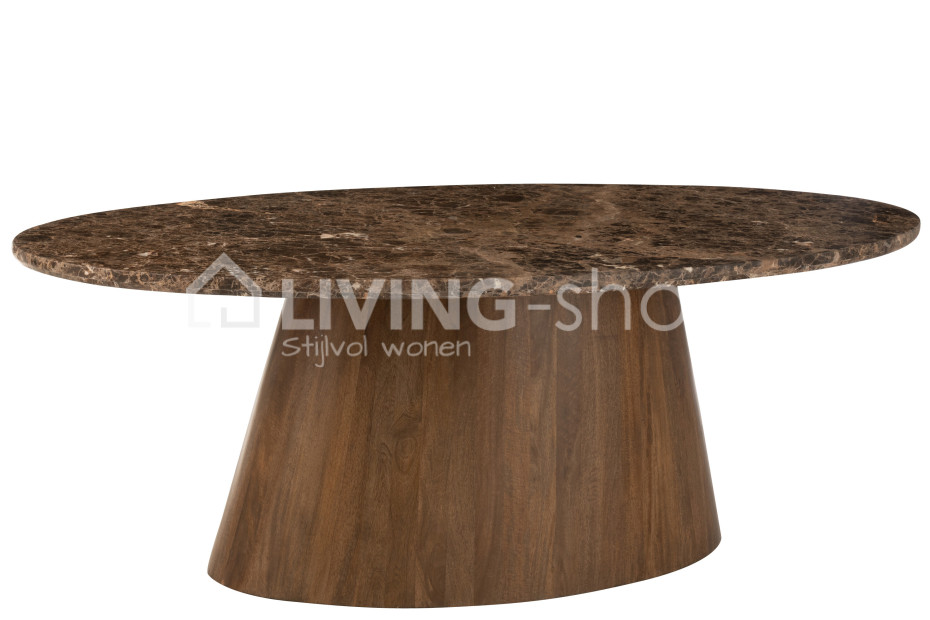 Dineertafel ovaal marmer bruin van J-Line is een ovale dineertafel met marmeren tafelblad en conische mangohouten tafelvoet