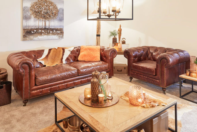 Lederen Chesterfield sofa in vintage leder bruin of zwart leder