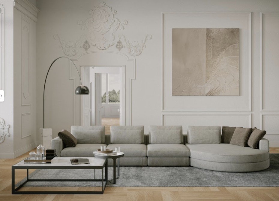 Dunhill sofa is een modulaire zetel met lounge daybed van het Belgische merk PR LIVING