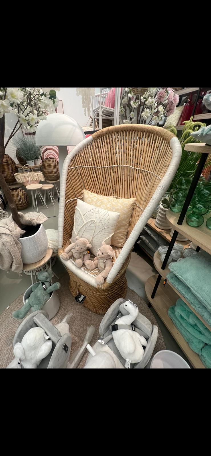 Deze Ibiza stijl hoge stoel voor volwassenen is gemaakt van bamboe naturel en wit