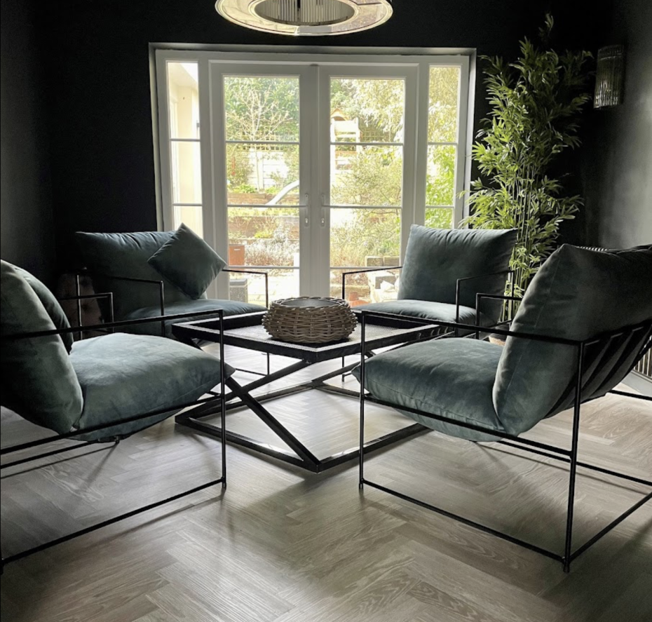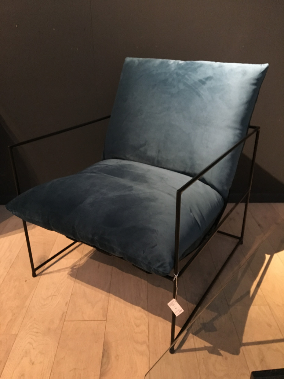 Deze Amber-01 clubzetel van PR LIVING is ontworpen met een fijn zwart metalen frame en dik comfort zitkussen.
