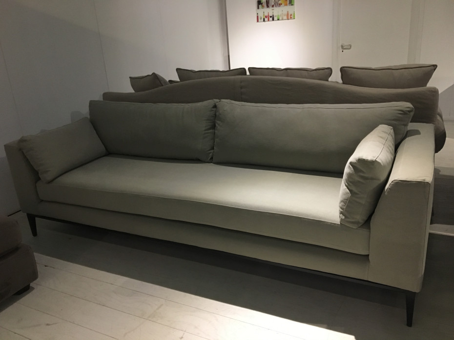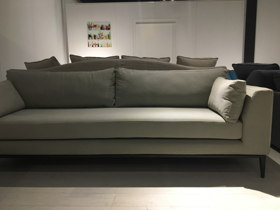 PR Living moderne sofa Como is te bezichtigen in de showroom waar je meteen alle kleuren stoffen en koeleders kan uitkiezen