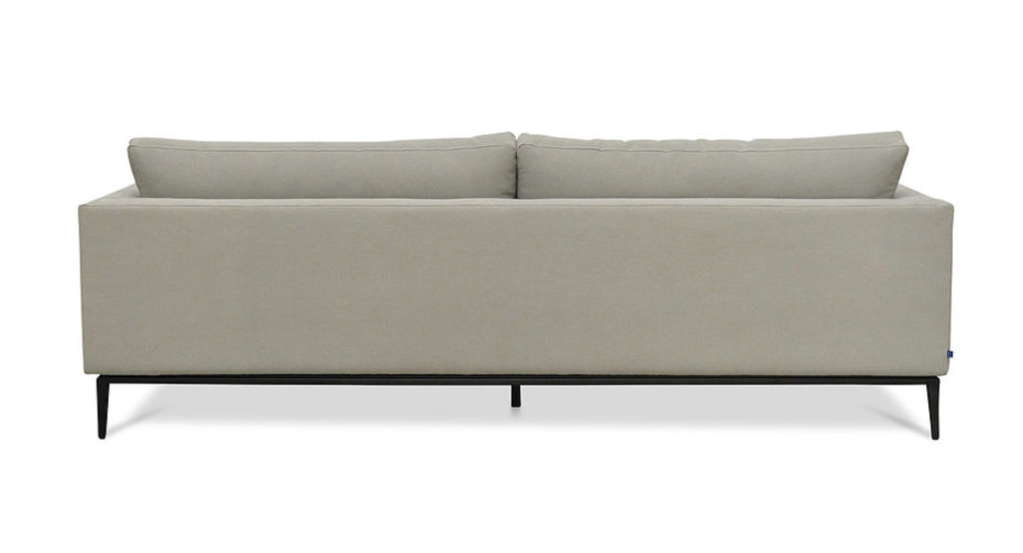 Pr Living zitbank afgewerkt met zwarte metalen zetelpoten.