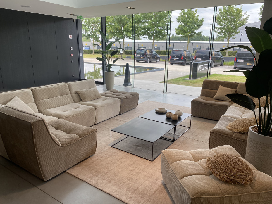 Modulaire lounge sofa grid is comfortabel om te zitten en languit te loungen