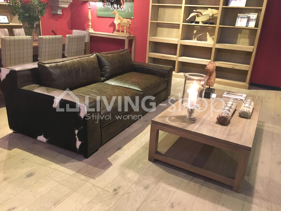 Robuust uitziende sofa met leder en koevel. Het antieke leder in combinatie met het koevel geeft een stoere look aan deze comfortabele lederen sofa. Koevel sofa met ruime zitting en aangename rugkussens. Zitdeel meet 100cm.